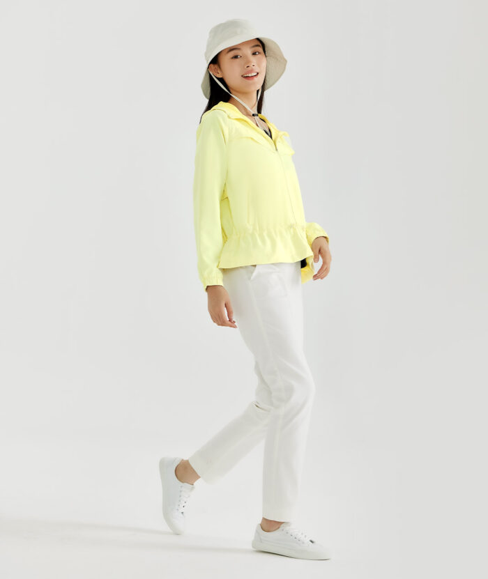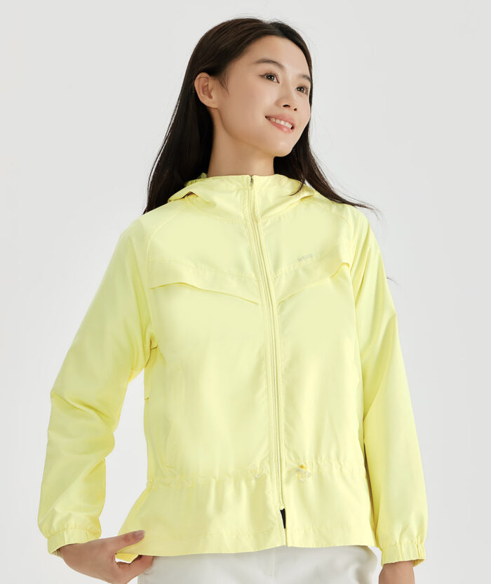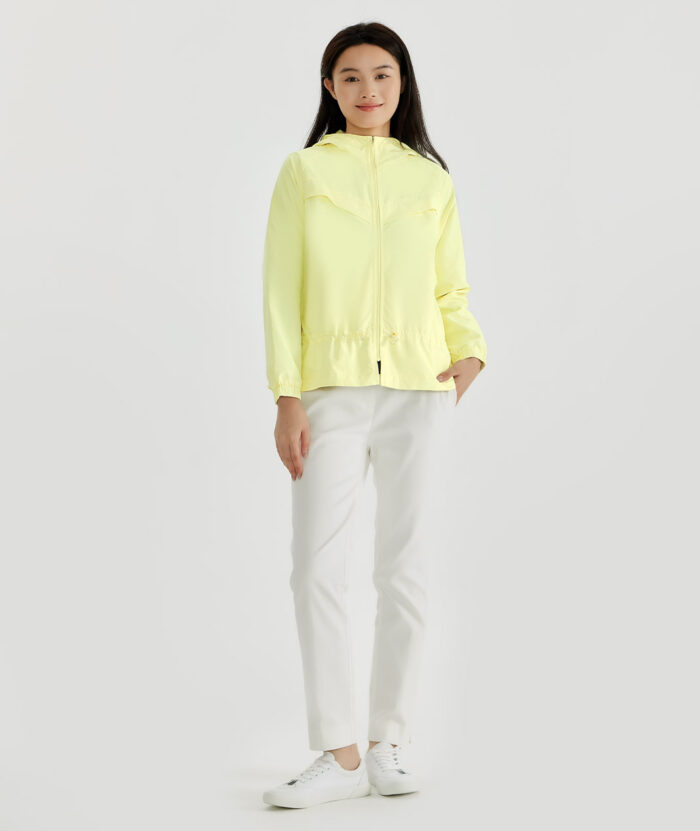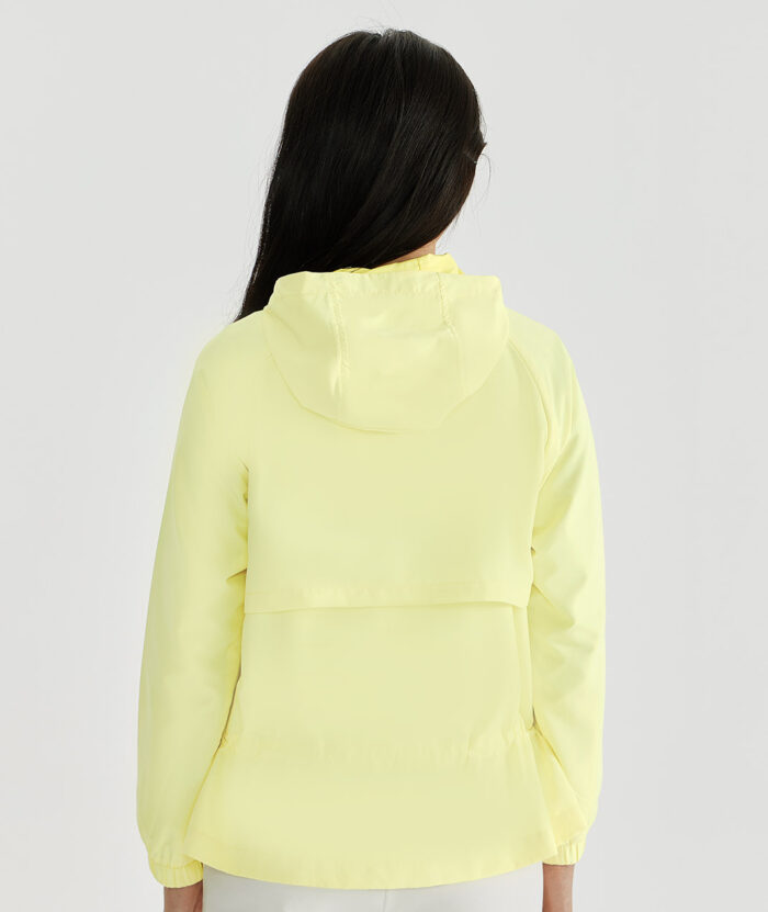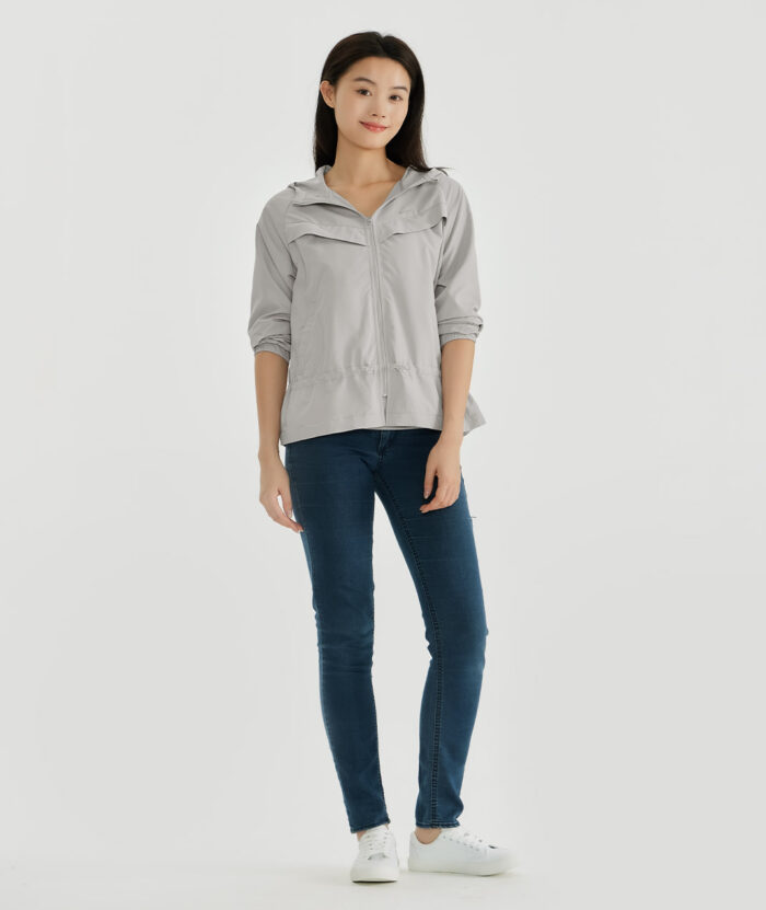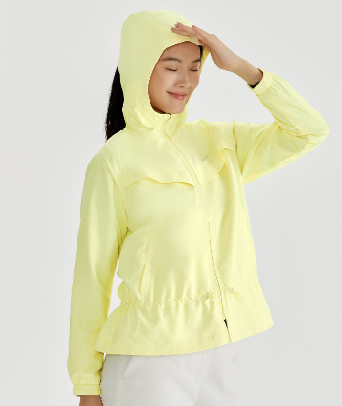 - 抗UV環保防潑水外套,高機能布料防潑水防風隔濕,輕便透氣,穿著乾爽舒適。背部透氣開口與馬尾洞設計,抽繩收腰修飾身形,環保製程兼具機能,適合露營健行與日常穿搭。