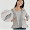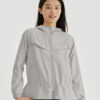 - 抗UV環保防潑水外套,高機能布料防潑水防風隔濕,輕便透氣,穿著乾爽舒適。背部透氣開口與馬尾洞設計,抽繩收腰修飾身形,環保製程兼具機能,適合露營健行與日常穿搭。