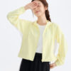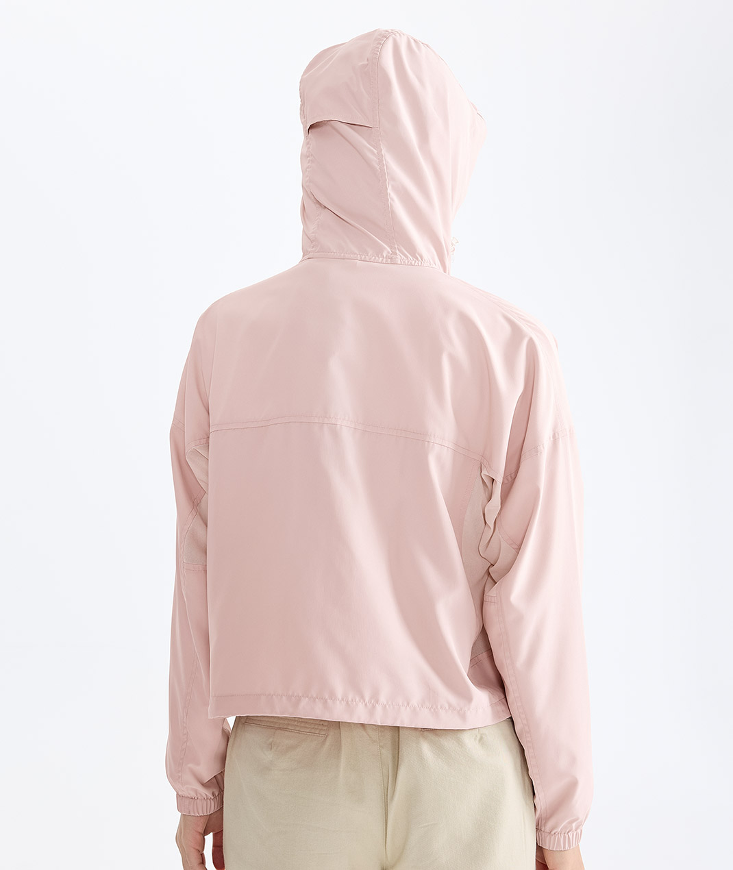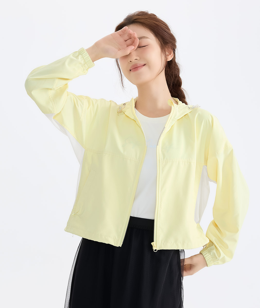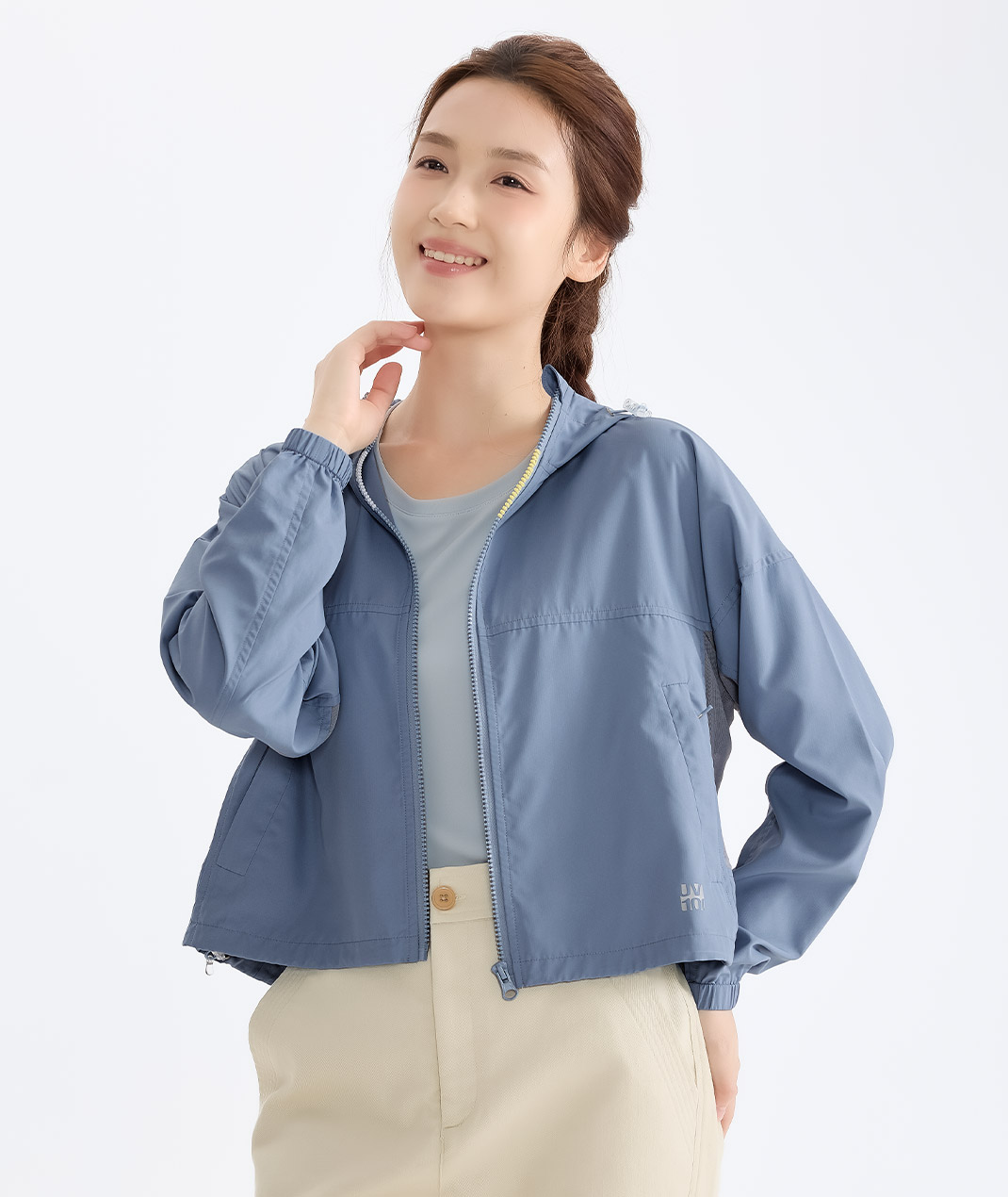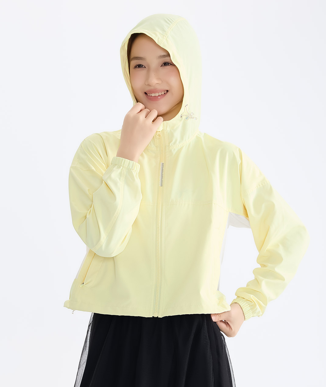 - 連帽立領設計,涼感吸濕速乾輕量布料,具備UPF50+強效防曬。拉鍊口袋安心收納小物,造型拉鍊齒與透氣網布增添休閒感;馬尾洞輕鬆放出長髮,日常通勤到度假都好搭。