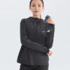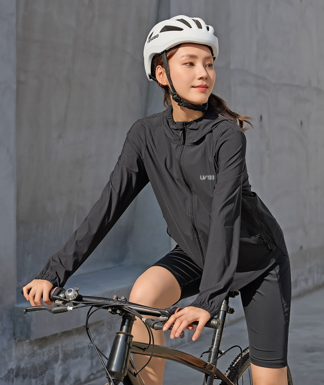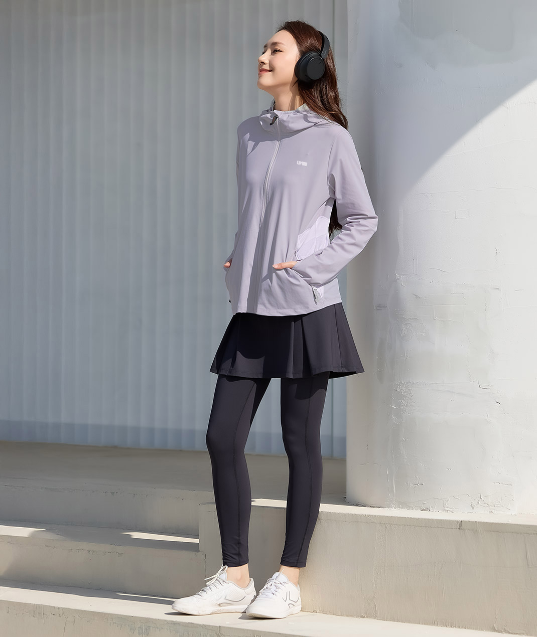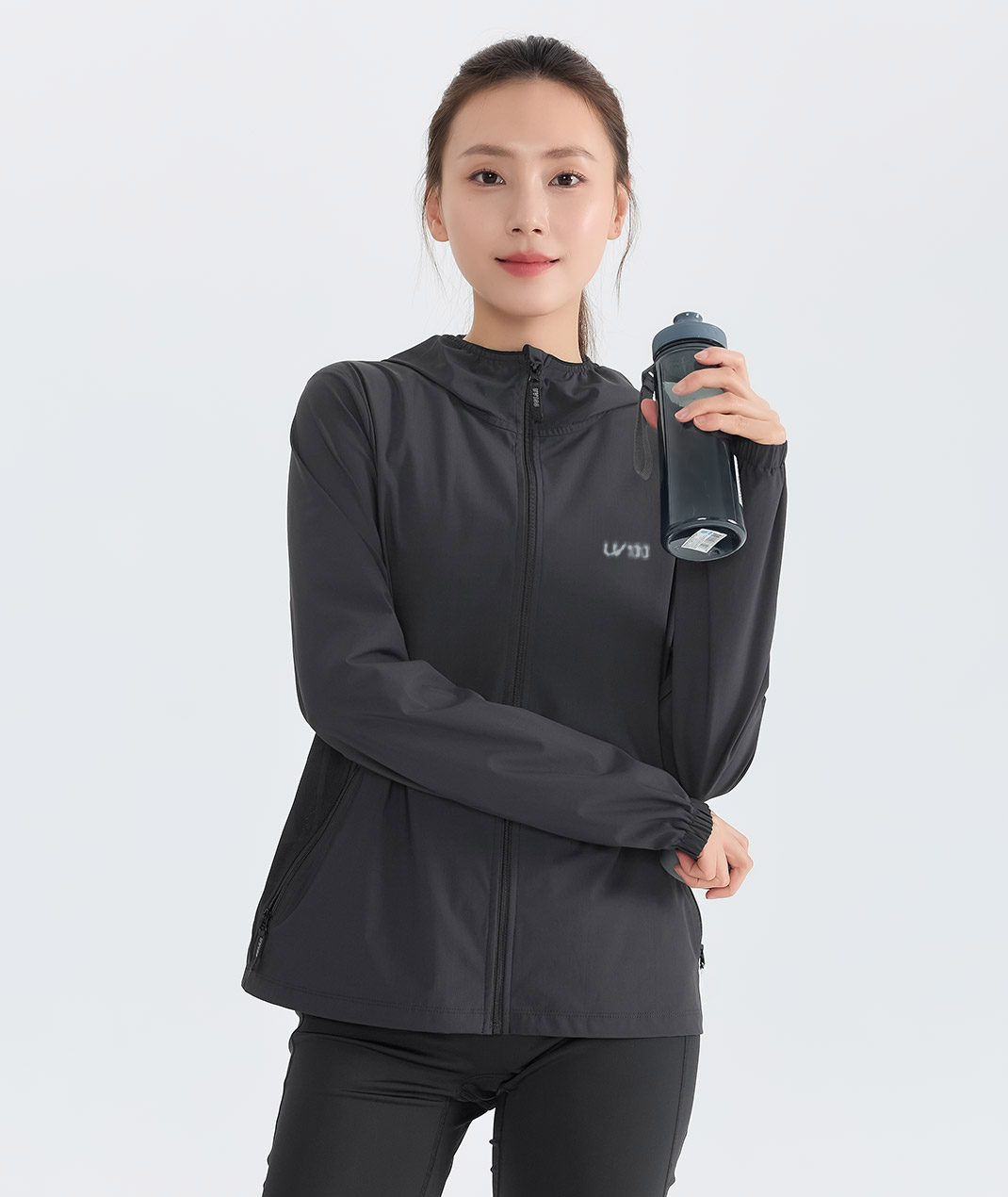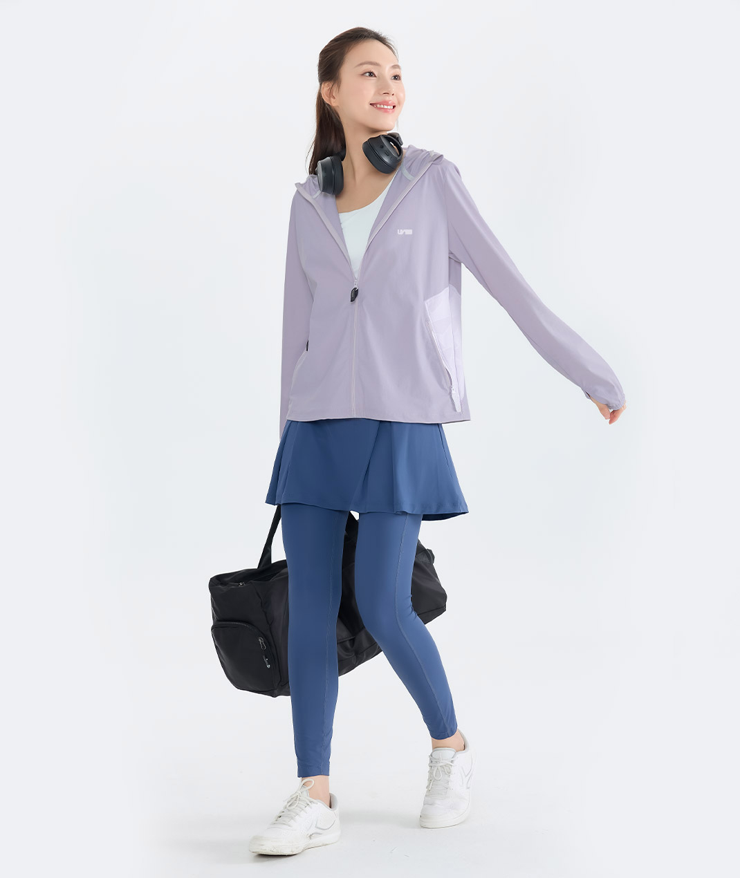 - 抗UV外套具 Q-Max 0.236 涼感與吸濕速乾,網布拼接透氣加倍。馬尾洞與指洞設計完美防護,抗菌減味不悶熱。適合慢跑、健行與日常休閒,穿出俐落修身比例。