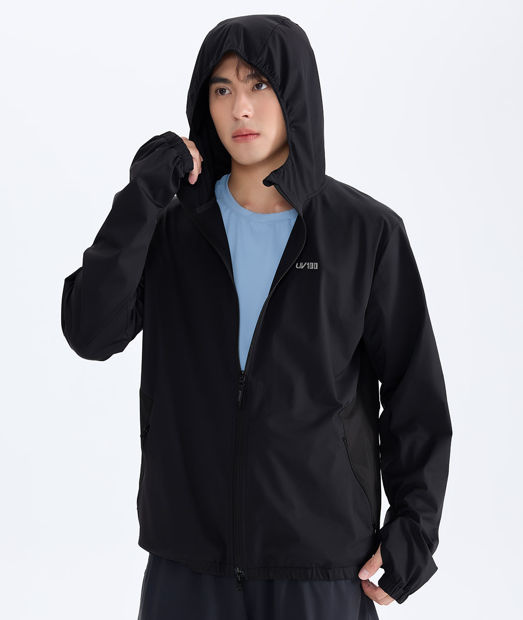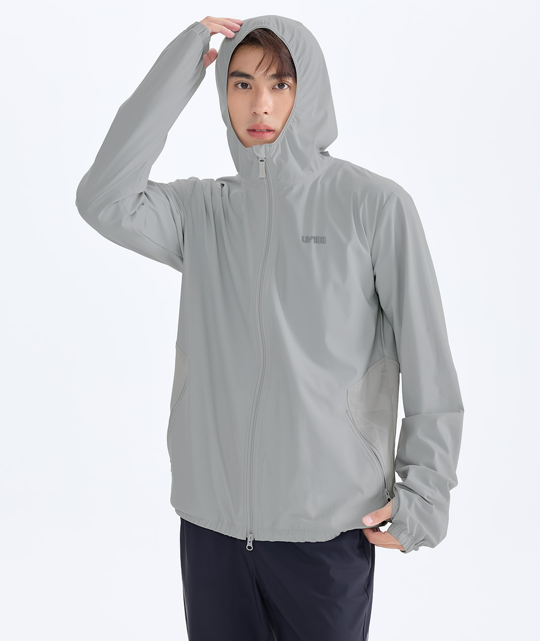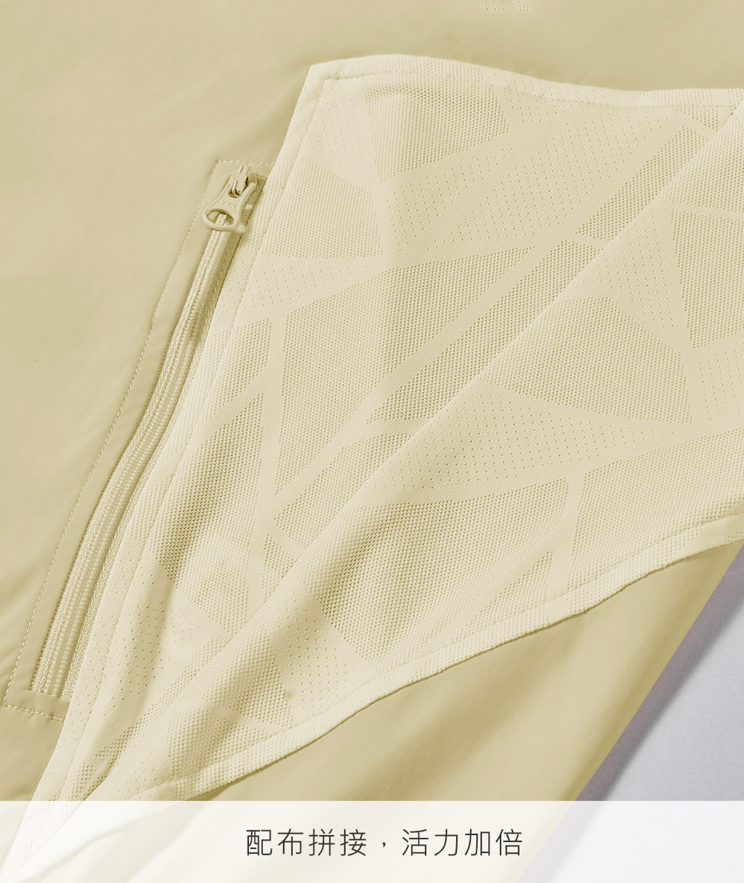 - 冰織彈性針織親膚涼感,幾何提花網布拼接透氣提升,告別悶熱黏膩。排汗速乾加抗UV,連帽縮口俐落版型;抗菌減味穿久更自在,變色副料點亮細節,運動日常都好搭。