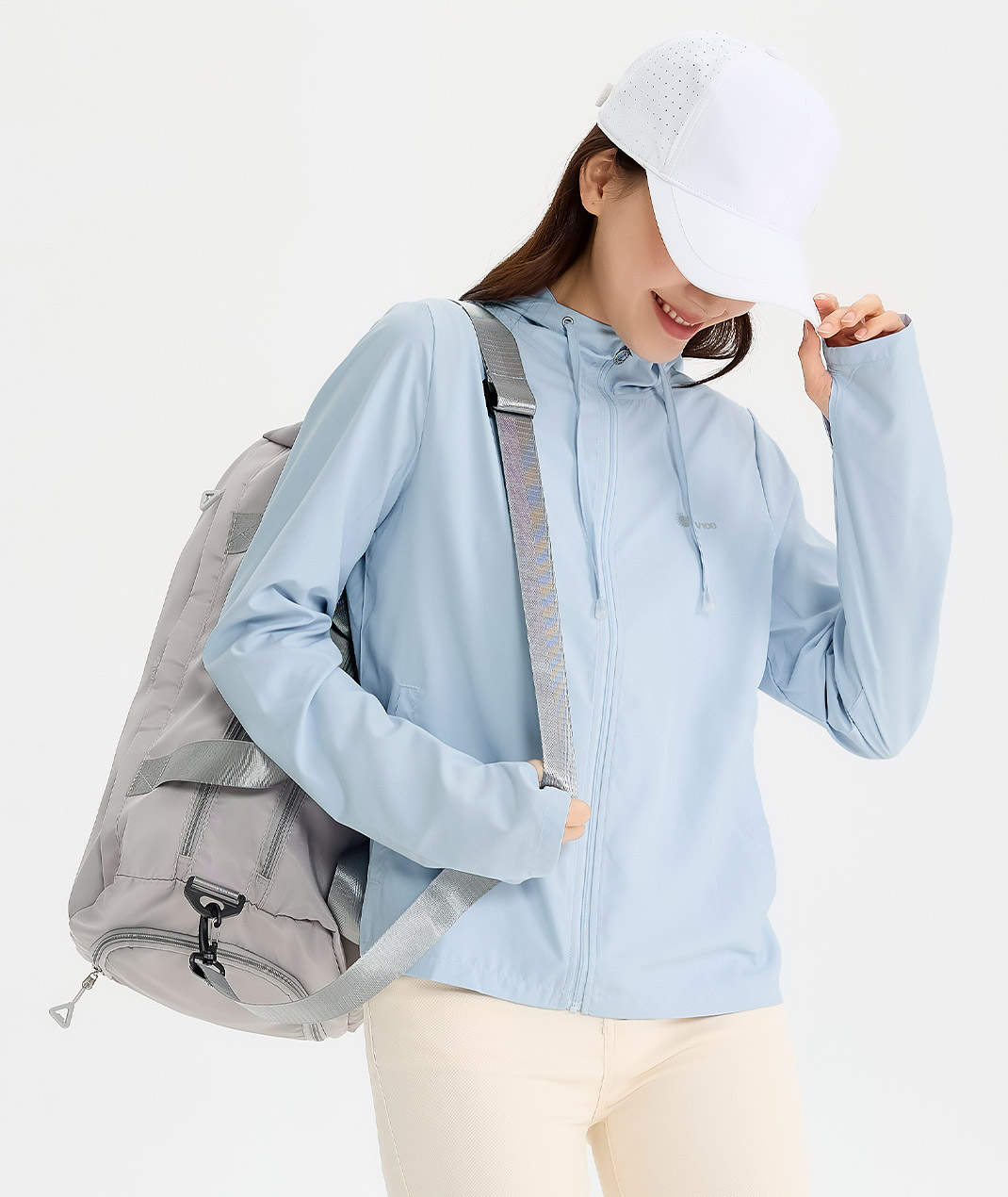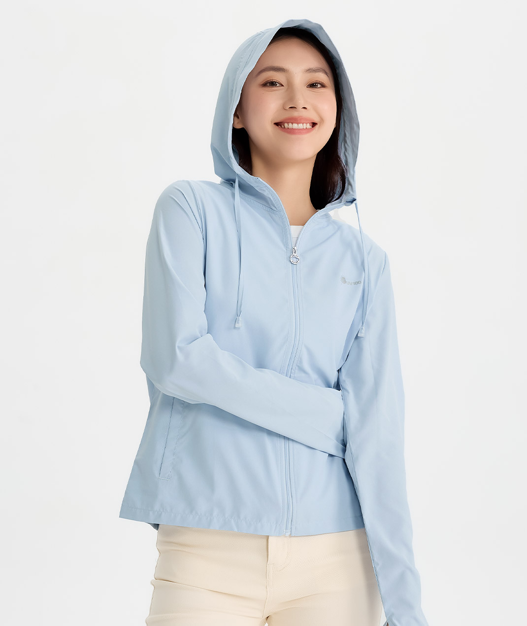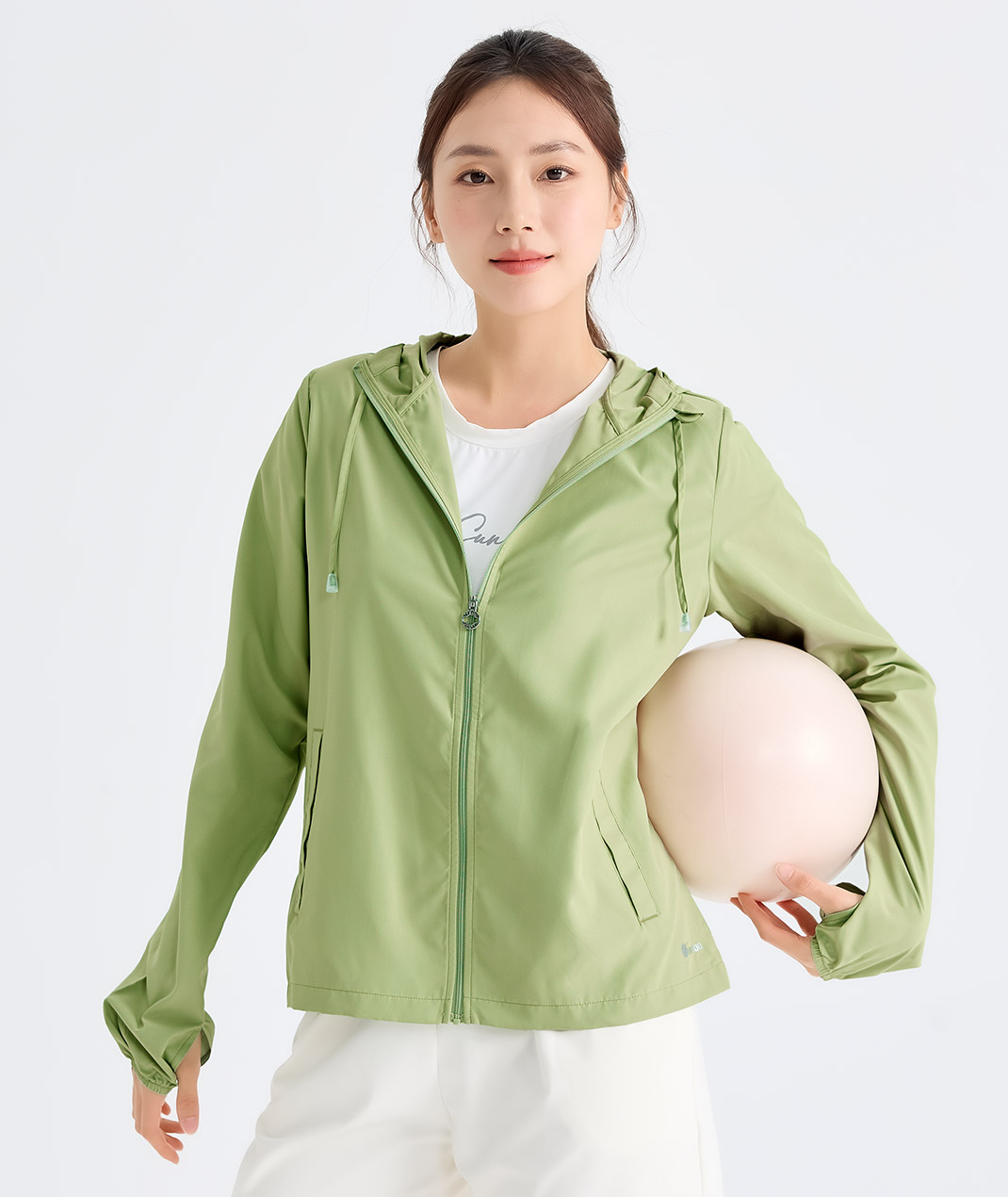 - Suptex-Cool清涼冰科技,Q-Max 0.343涼感有感。吸汗快乾不黏膩,馬尾洞好綁髮,指洞剪裁兼顧手部防曬,夏日戶外休閒一件搞定。