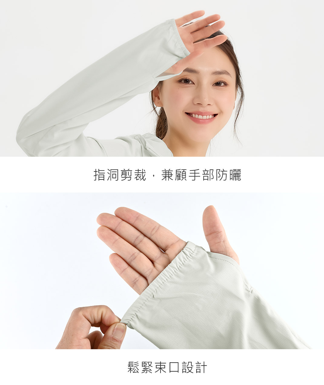 - UV100部分款式因套指設計,袖長尺寸會比一般款式來得長。