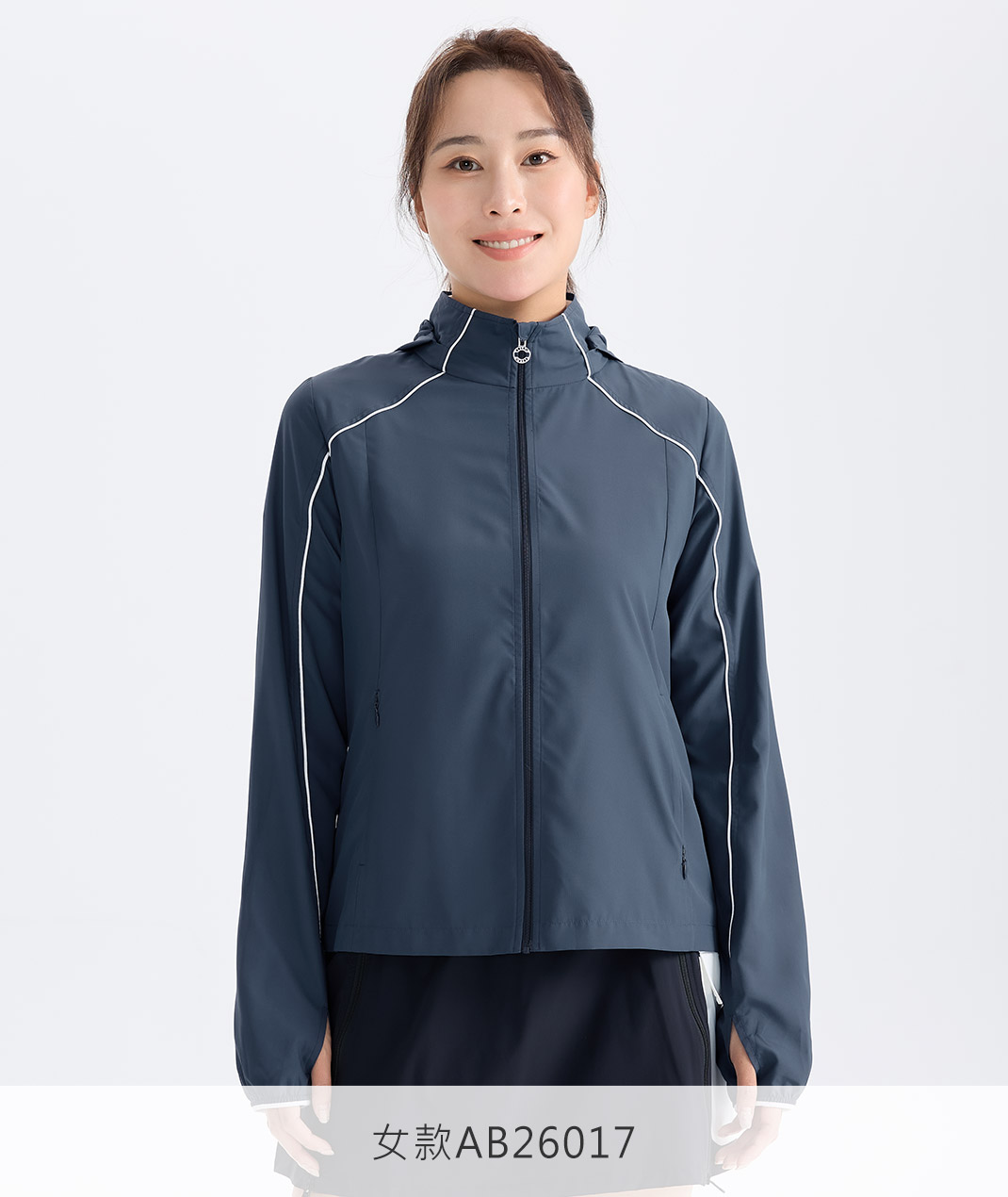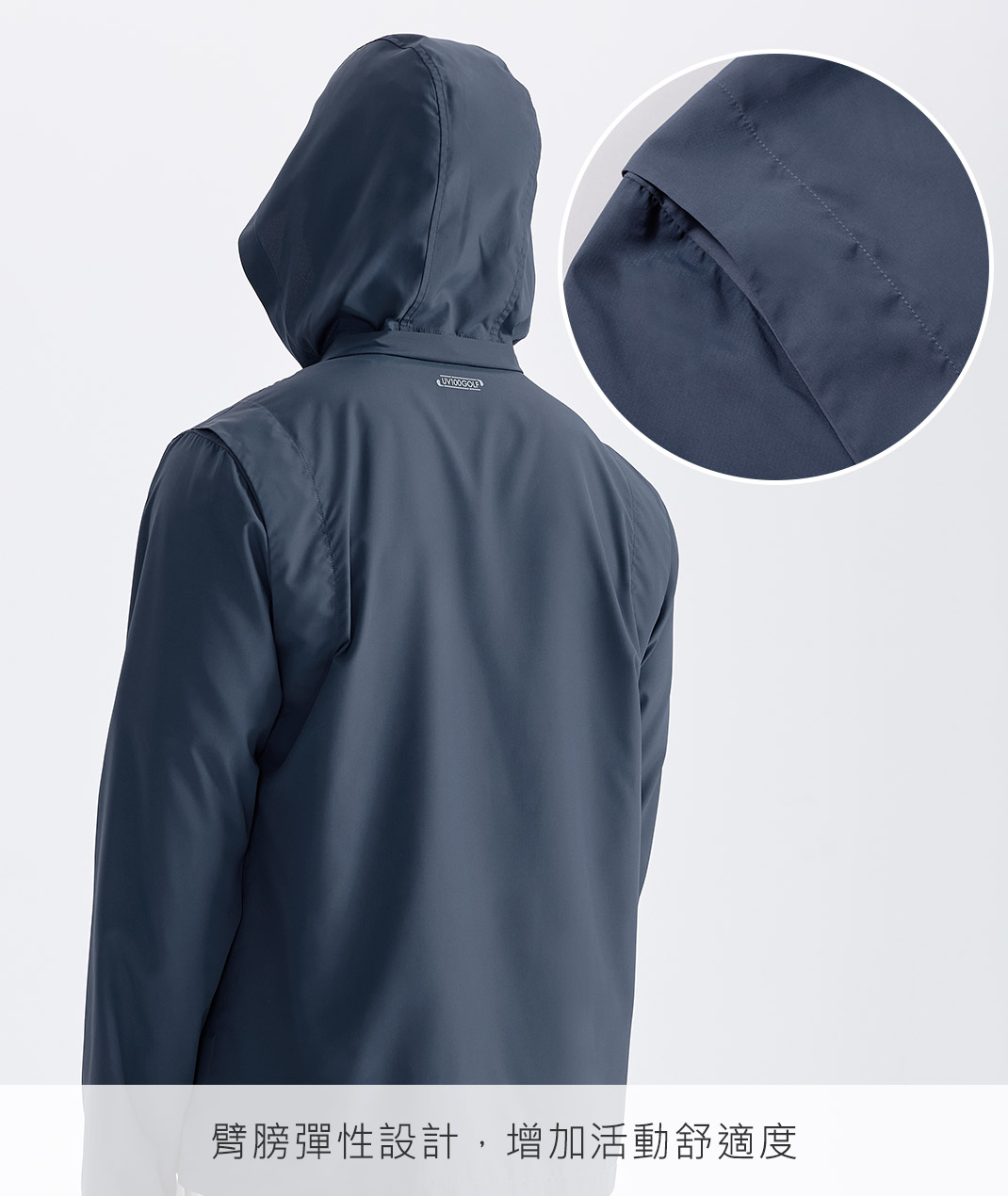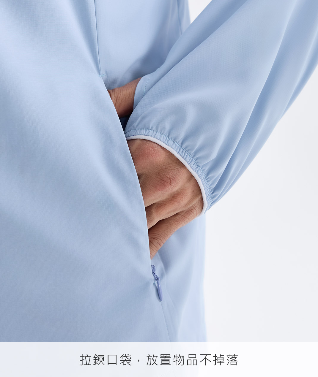 - 一件搞定兩種造型:帽子釘釦式可拆,立領和連帽隨心切換。流線剪接搭配跳色出芽線條,穿起來更俐落有精神;指洞剪裁兼顧手部防曬,清涼好活動,通勤到戶外都好穿。