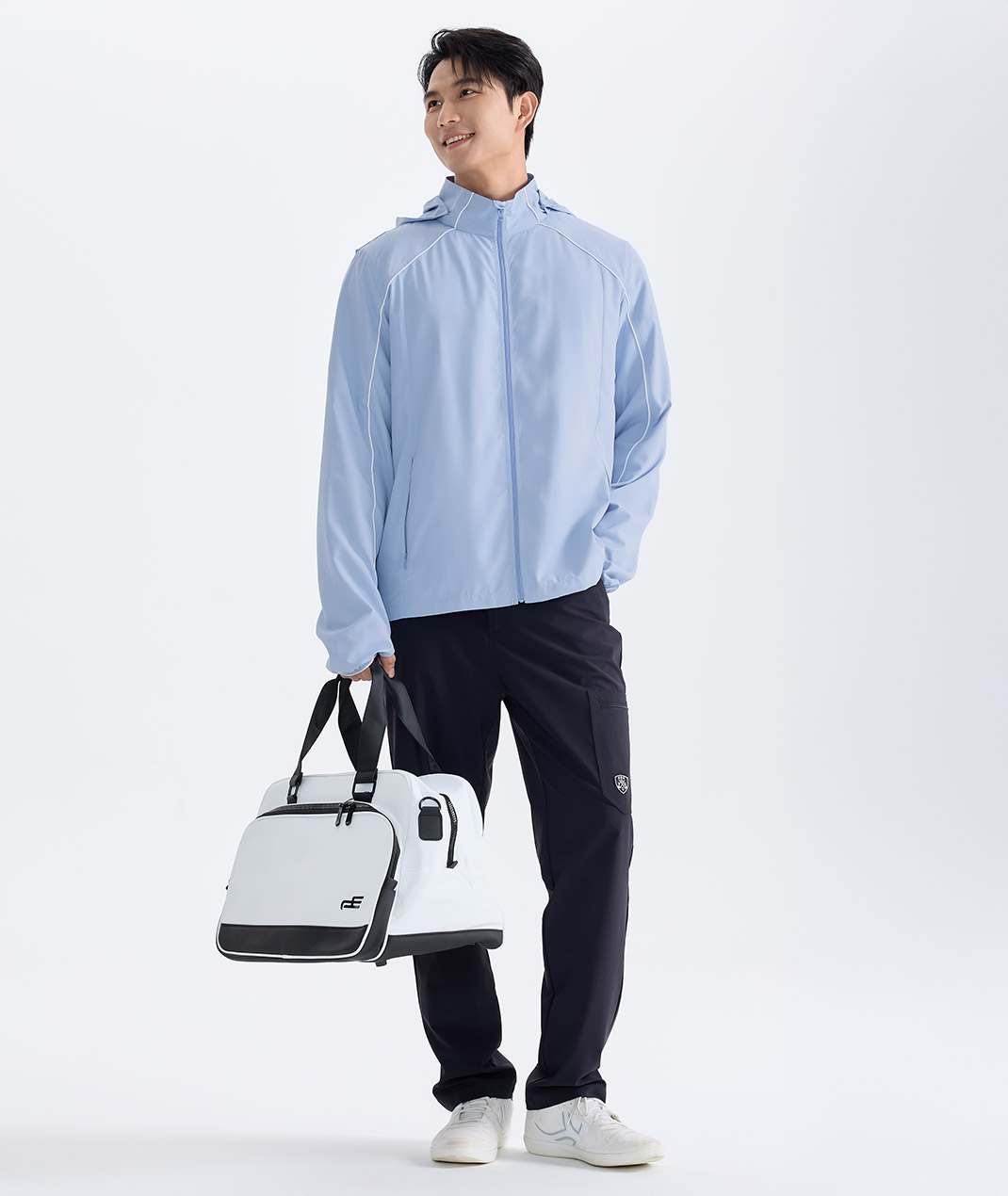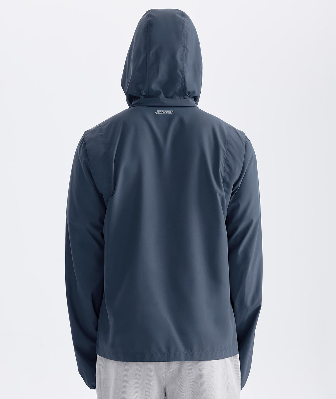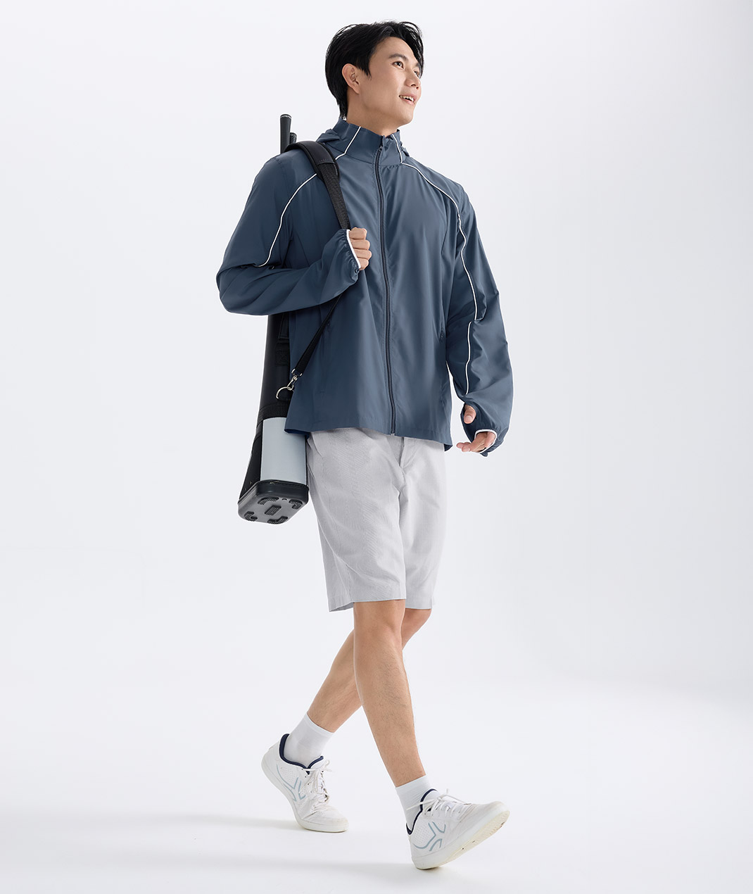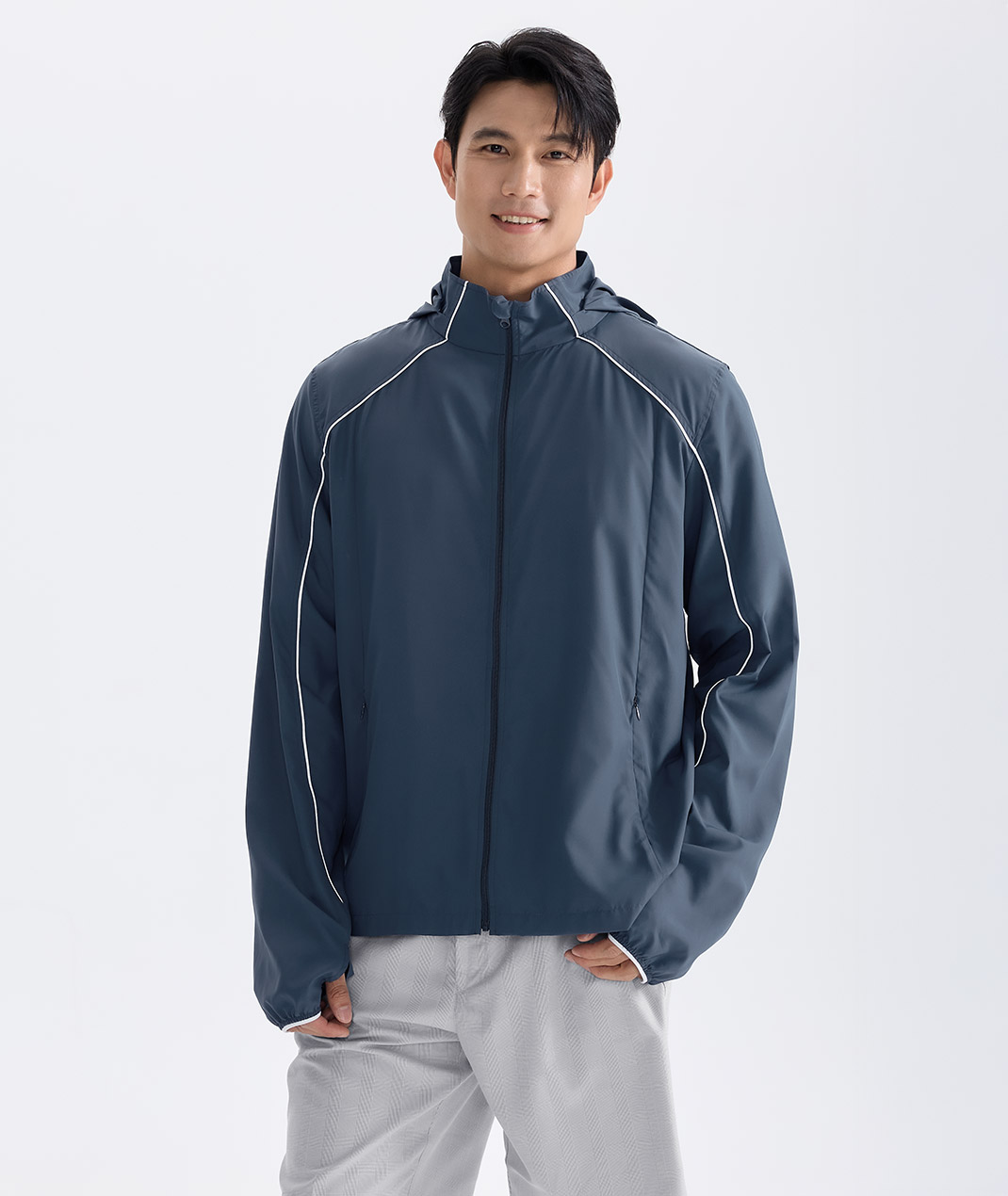 - 一件搞定兩種造型:帽子釘釦式可拆,立領和連帽隨心切換。流線剪接搭配跳色出芽線條,穿起來更俐落有精神;指洞剪裁兼顧手部防曬,清涼好活動,通勤到戶外都好穿。