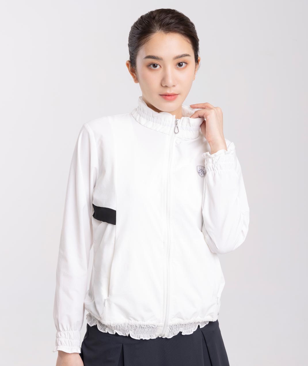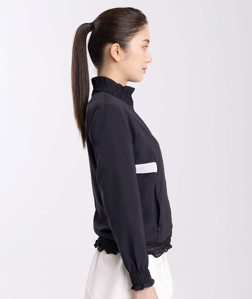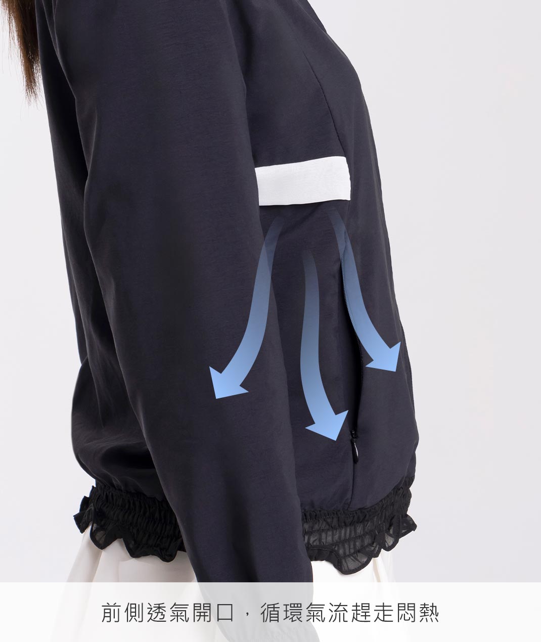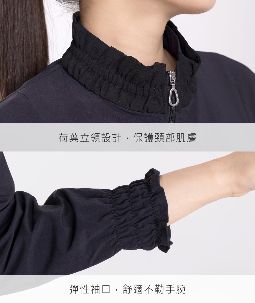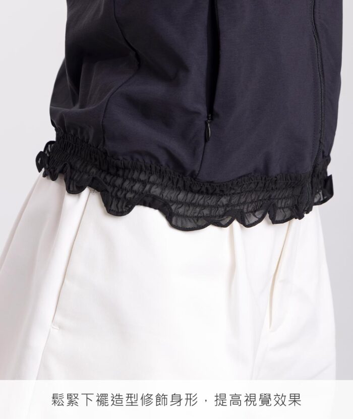 - 荷葉邊立領設計展現優雅感,搭配清涼透氣的防曬布料,有效遮蔽99%紫外線,讓您在炎熱的天氣中也能保持舒適。修身剪裁和時尚的設計,讓這款外套成為衣櫥中不可或缺的單品。