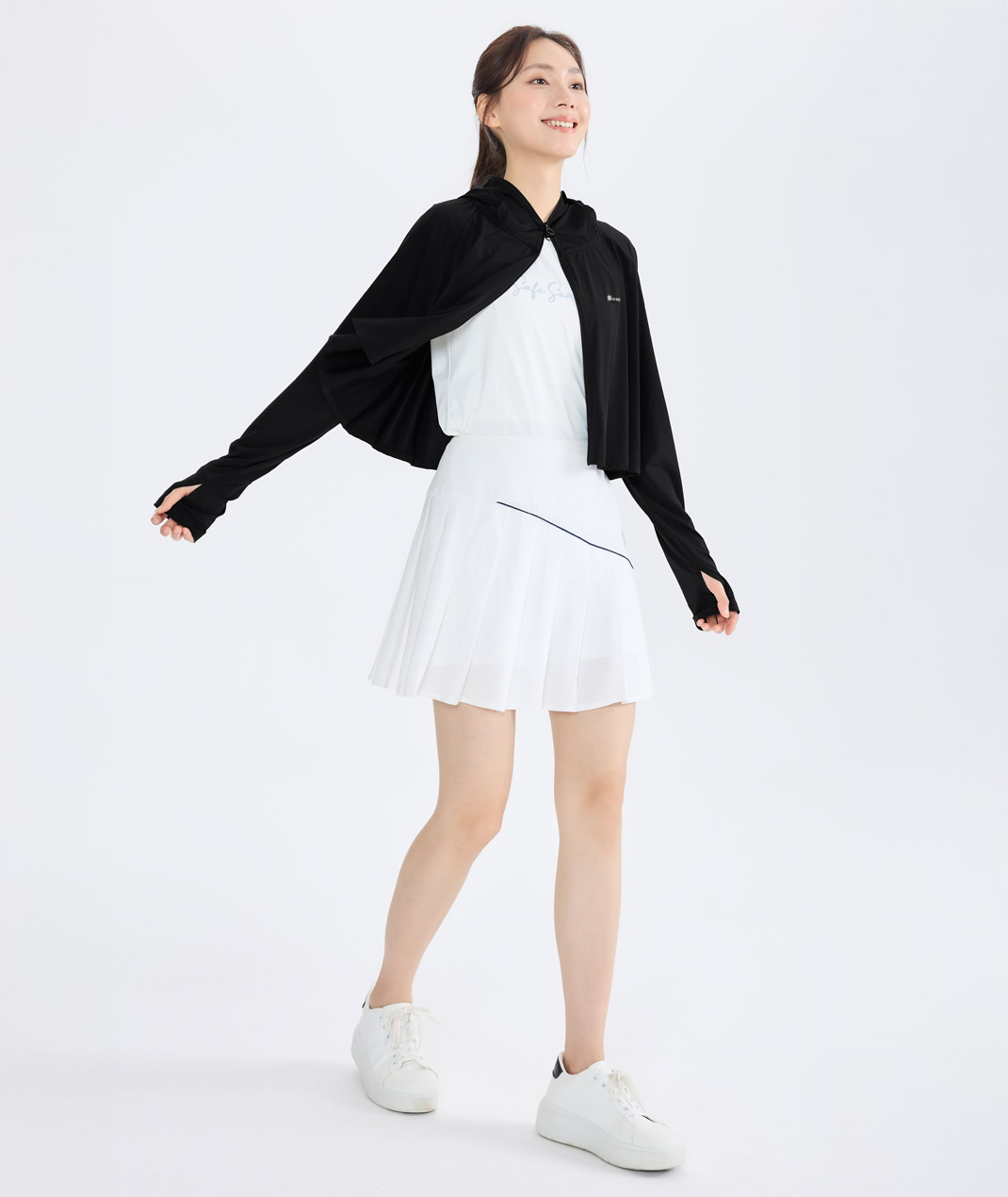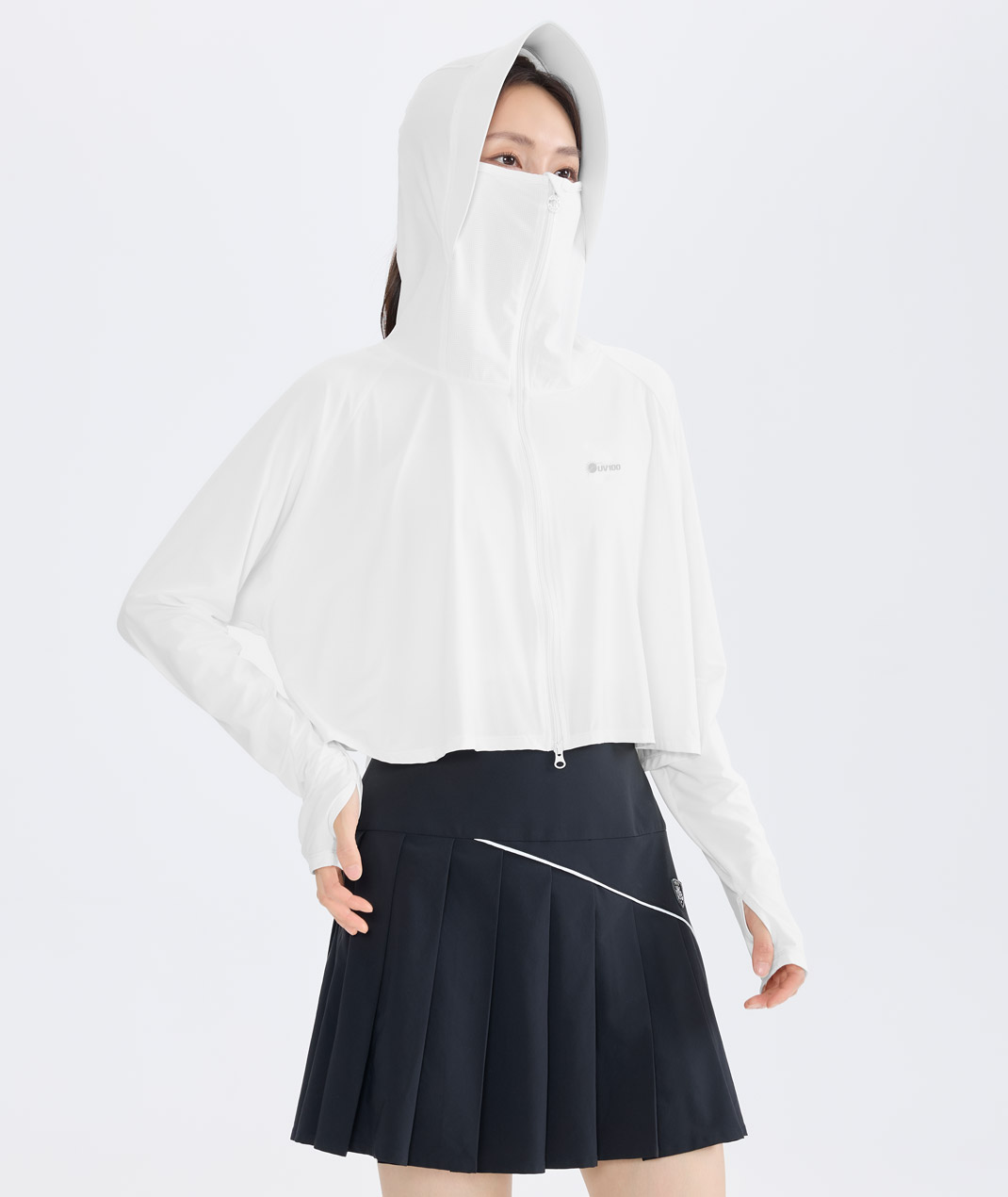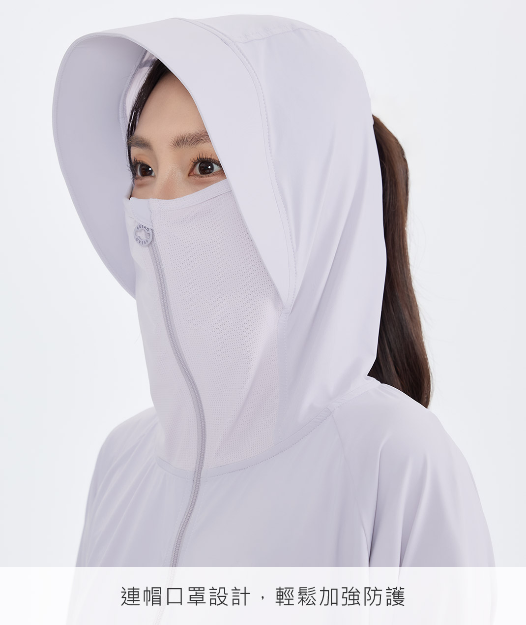 - 以一件整合防曬遮蔽與涼感機能需求。Apex涼感材質降低悶熱感,連帽口罩結合披風剪裁完整守護臉頸肩;通勤騎車、健行旅遊,一件解決所需防曬,收納俐落,防曬效率再升級
