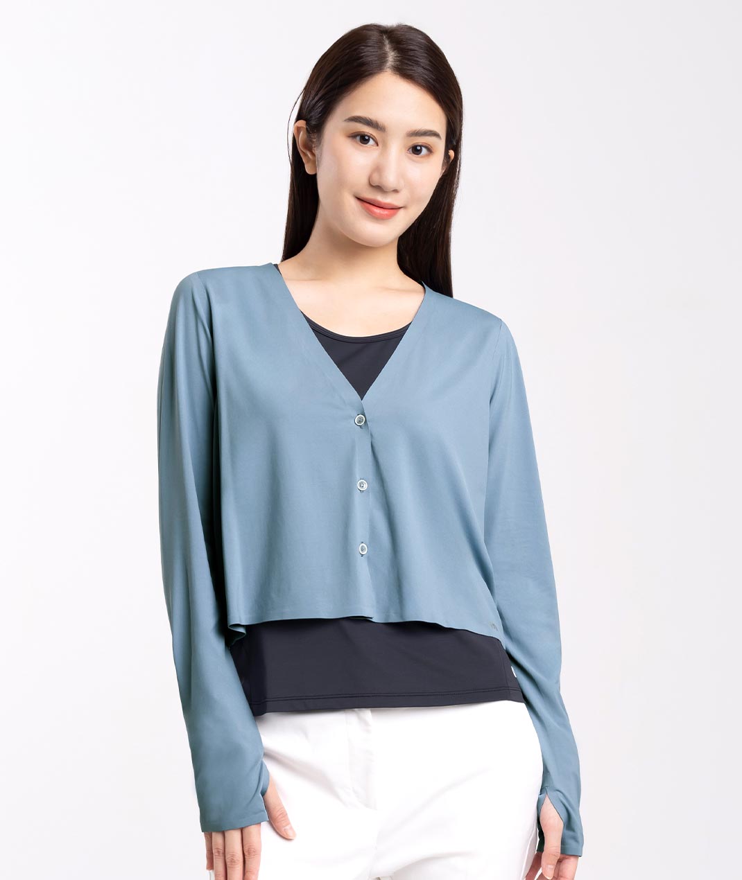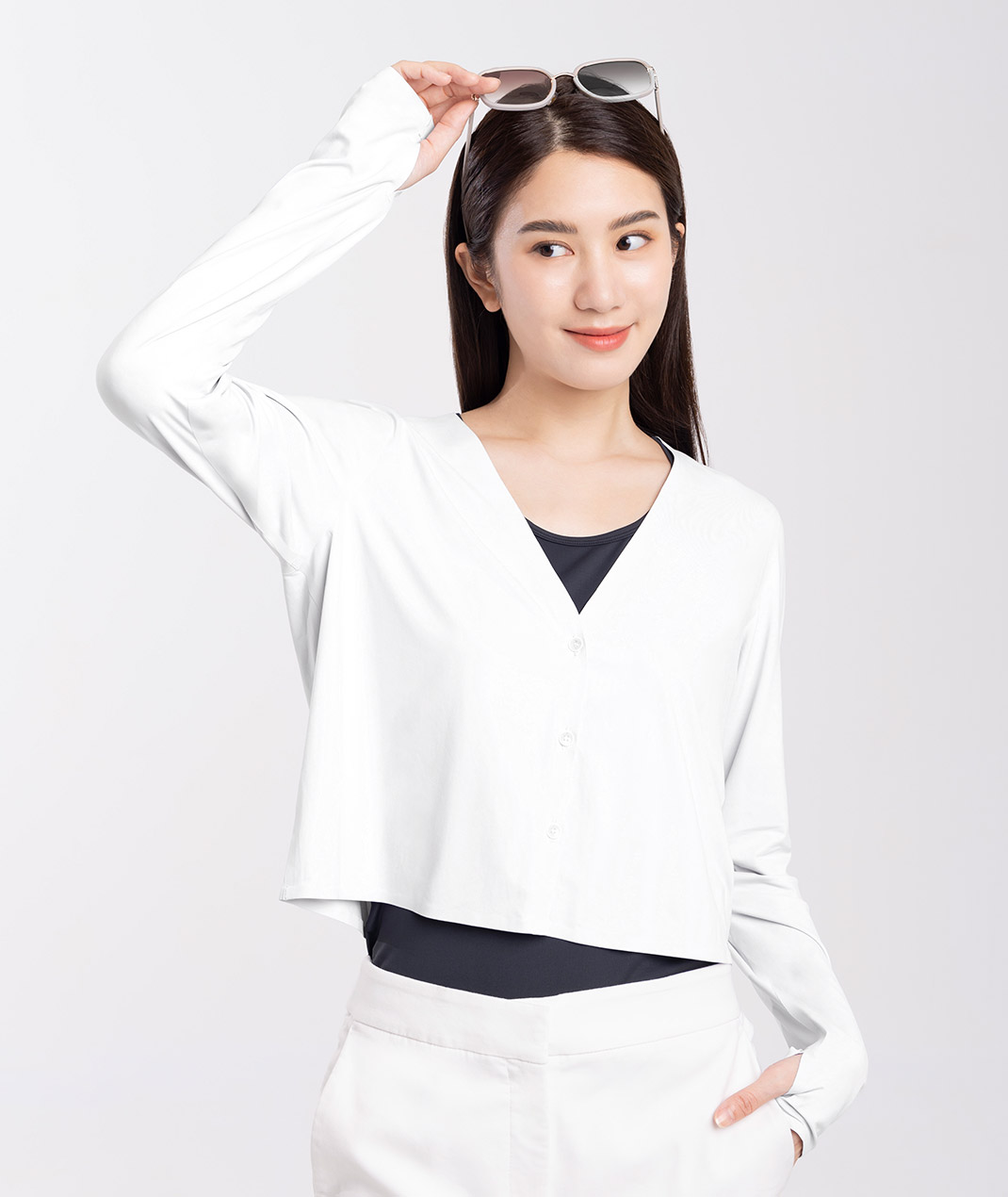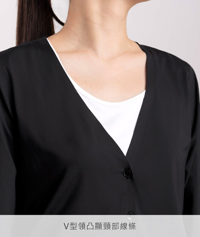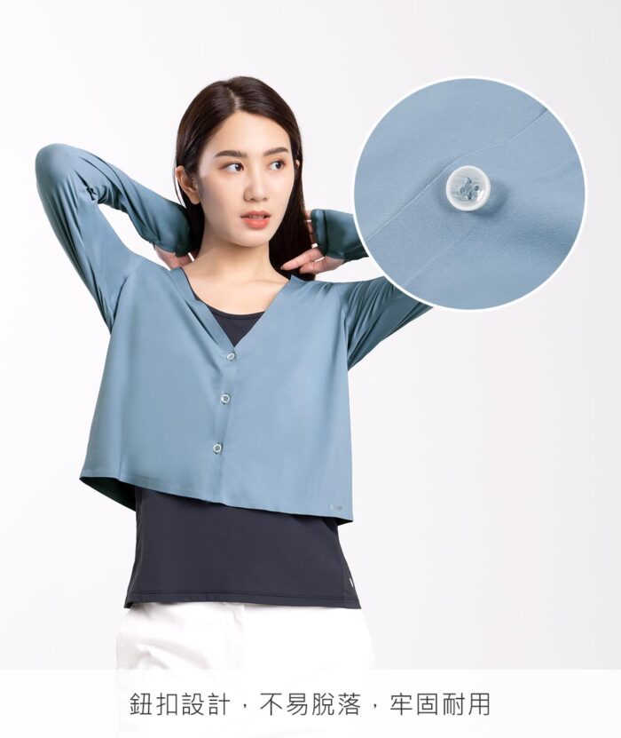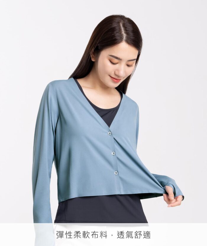 - 簡約型防曬外套,V型領凸顯頸部線條,無痕設計使整體更細緻,搭配涼感機能讓穿著舒適感再提升,為適合日常生活中的休閒單品。