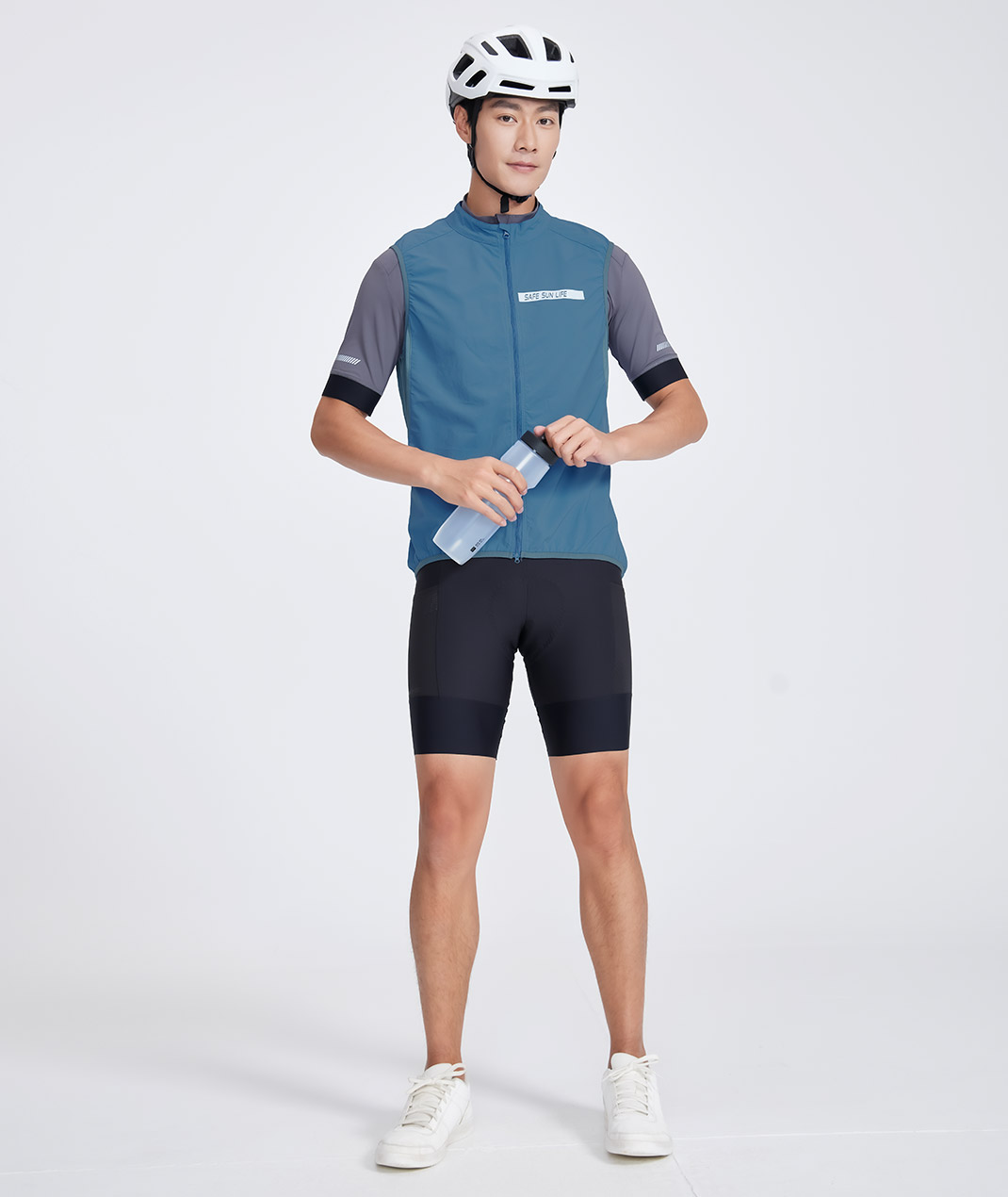 - 採用Apex涼感防曬布料,結合防曬、速乾、輕便設計,背後透氣孔提升舒適感;夜間反光條提升安全度,自體收納讓騎行無負擔!