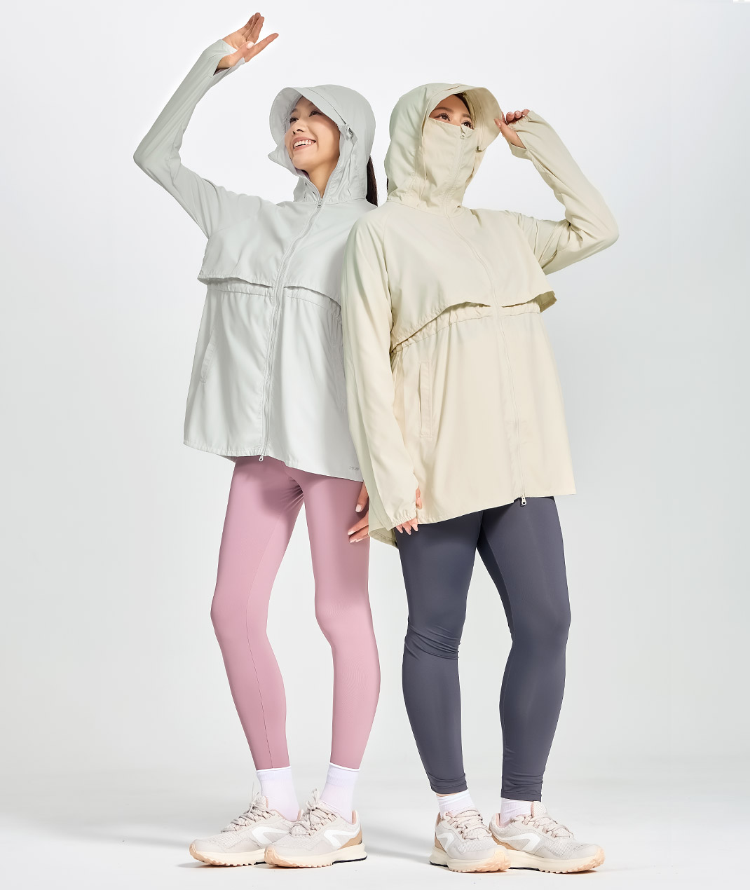- 採用Suptex涼感布料,清涼透氣,附口罩連帽設計,防曬可遮蔽99%紫外線,透氣孔增強通風,帽沿可拆,收腰傘狀下擺,修飾身形