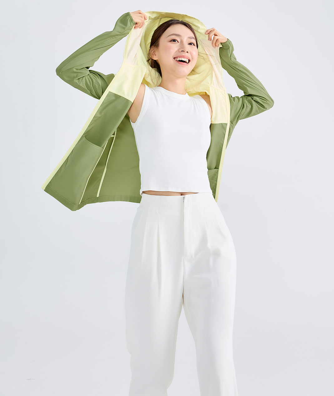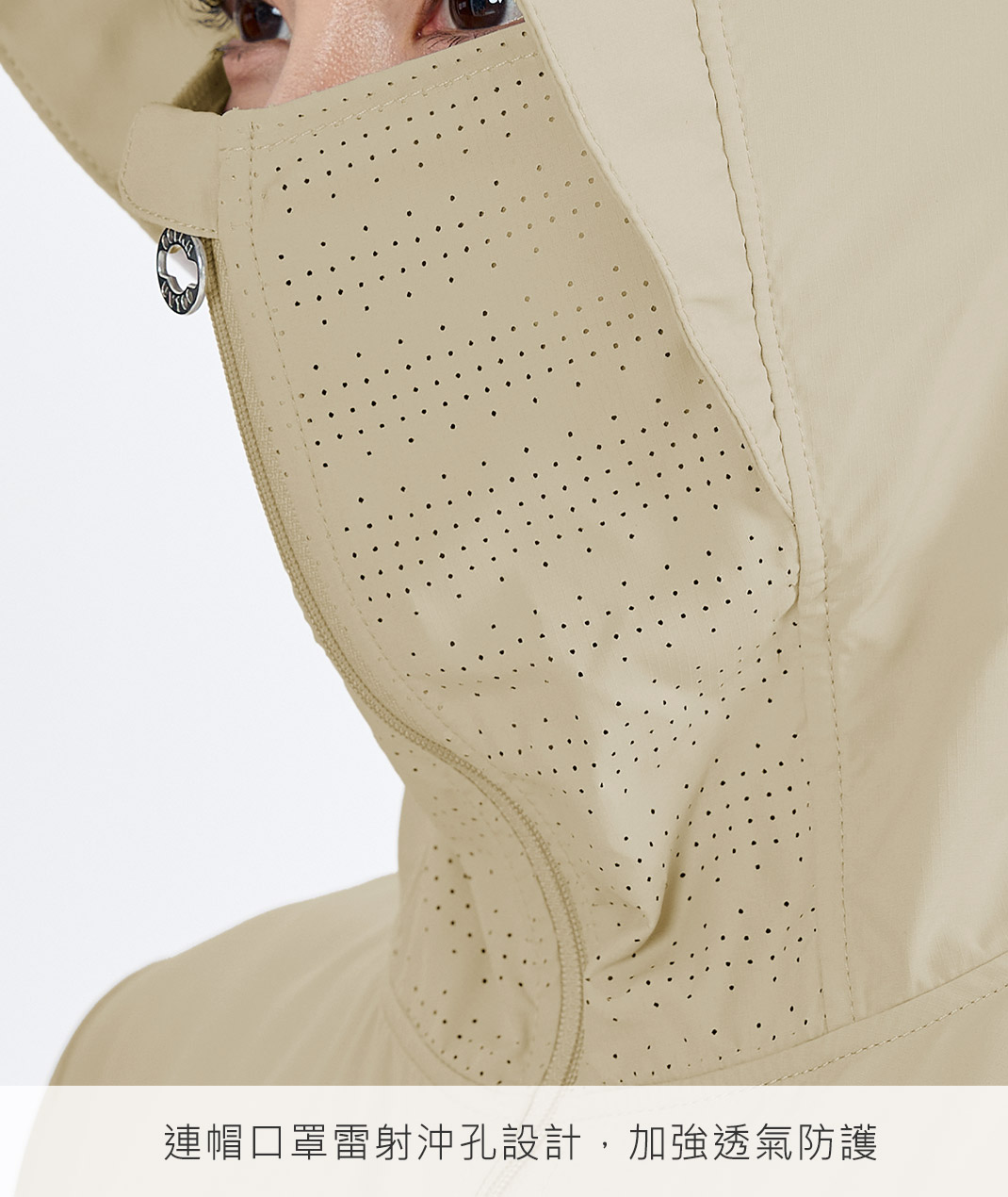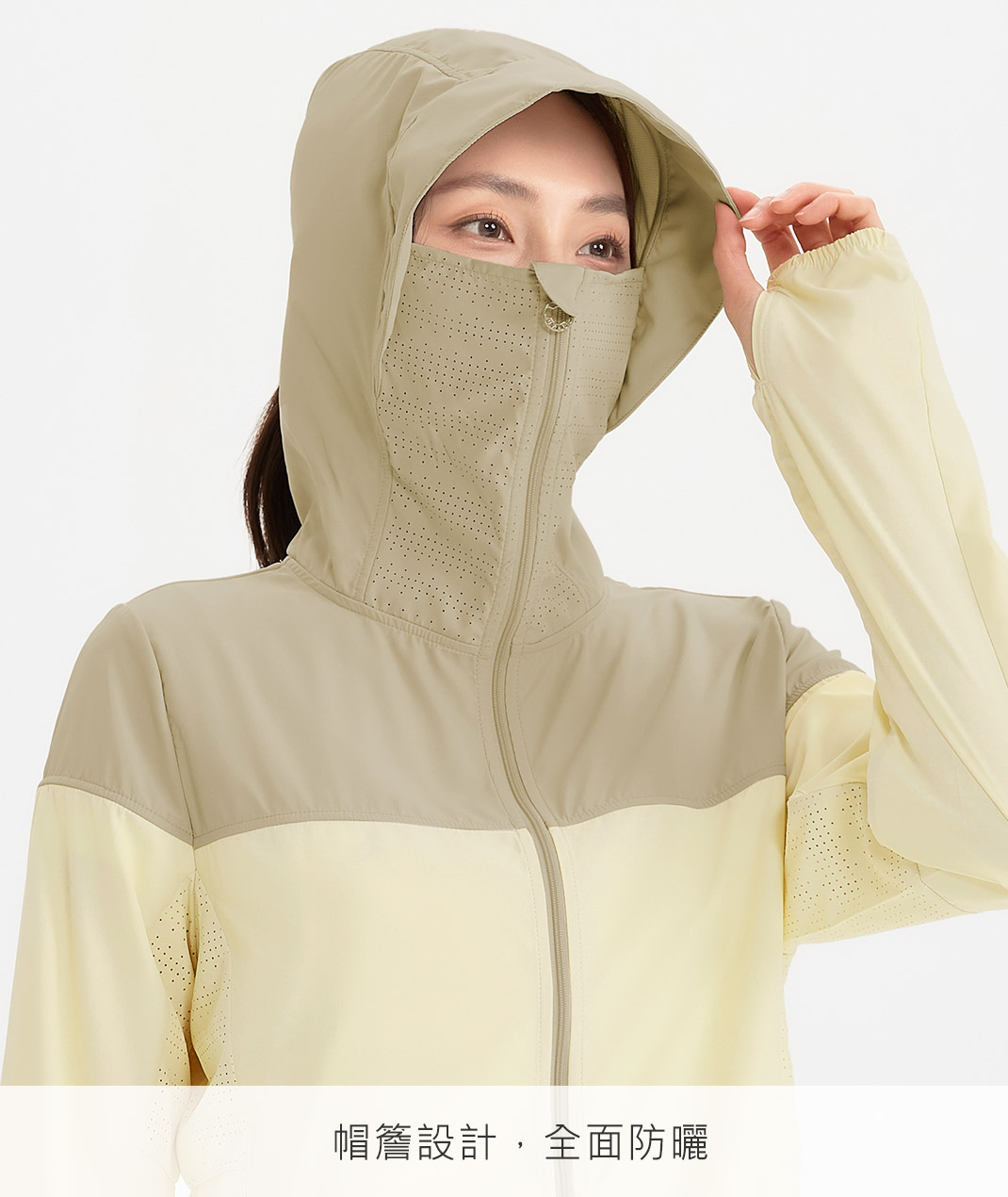 - 口罩連帽加帽簷,通勤日曬一拉就遮臉。護指設計固定袖口護手背,拉鍊口袋鑰匙票卡不怕掉。雷射沖孔透氣提升,告別悶熱黏膩;日常開車、機車都好搭,穿上就走更俐落。