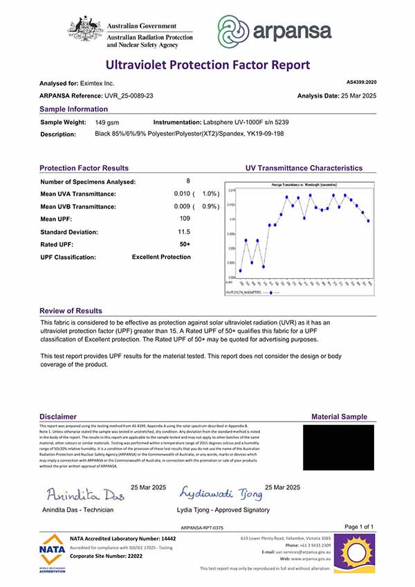 - ※印花布料為相同白色布底做不同的數位印花,故防曬認證編號相同※