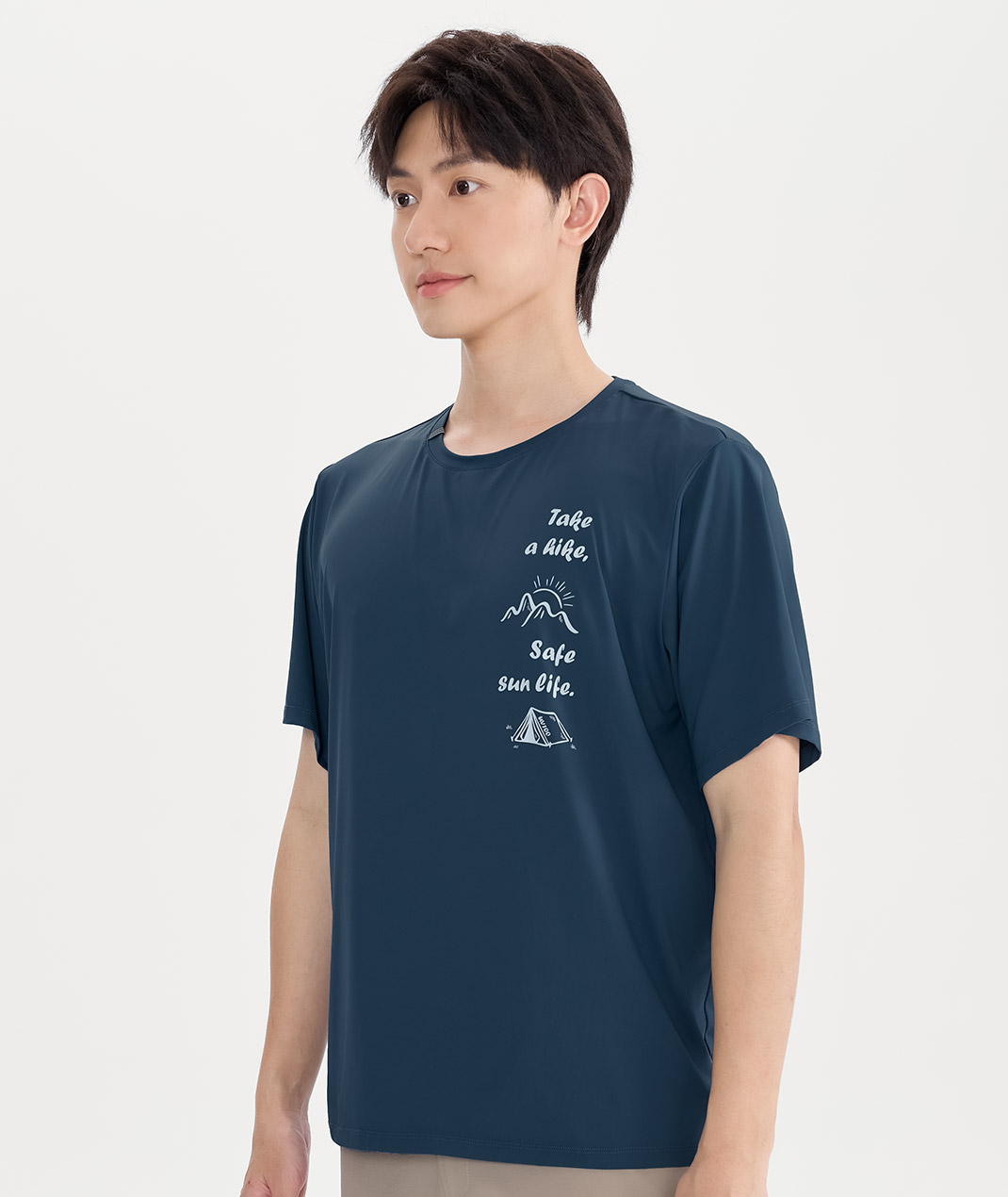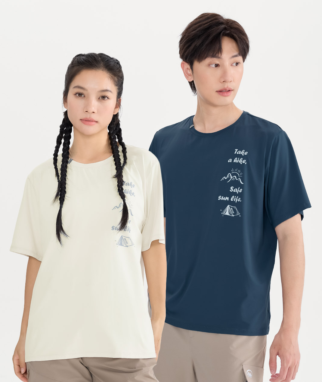 - 抗UV-Apex印花短袖,版型男女皆宜,以山系圖樣帶出戶外氛圍。涼感透氣、布料柔軟有彈性,動起來不緊繃不悶熱;跑步、健身、球類到日常都百搭好穿。