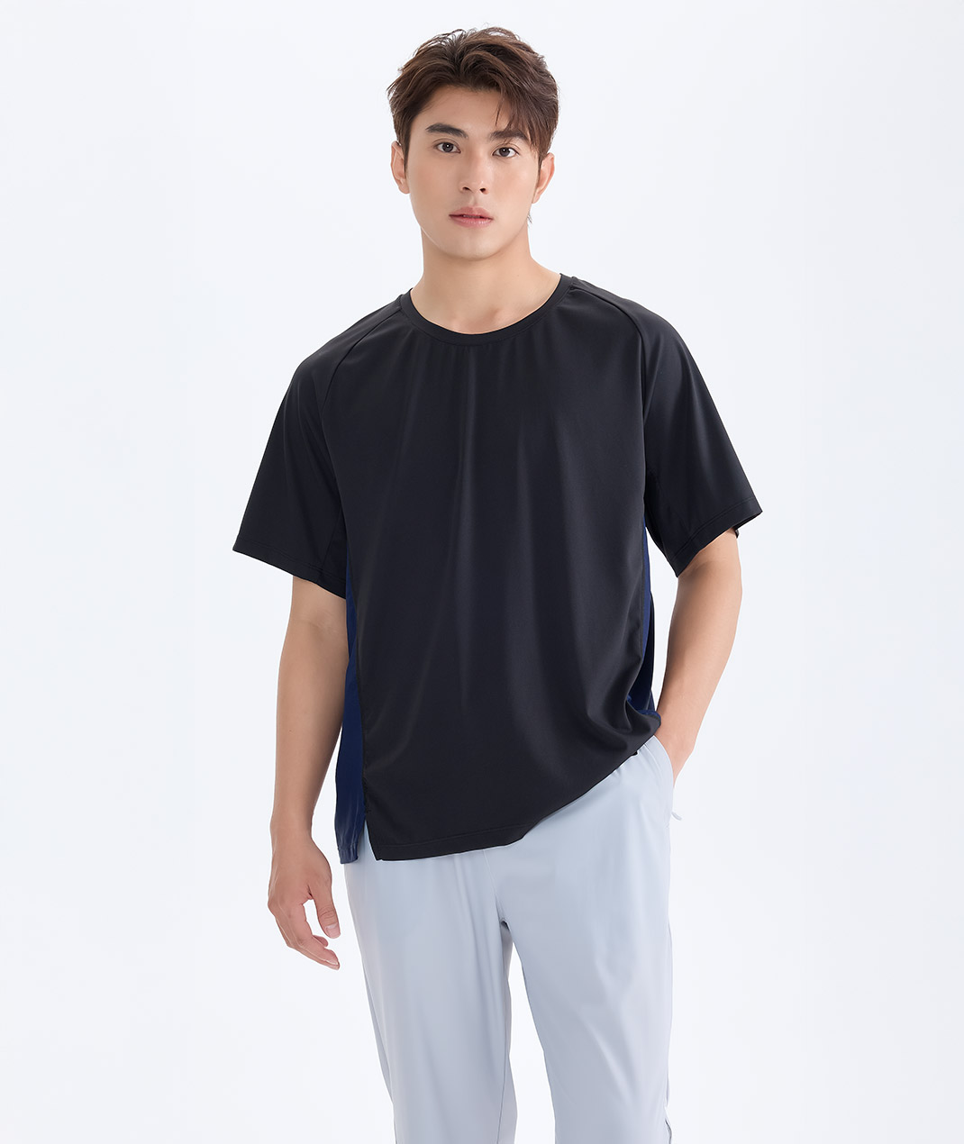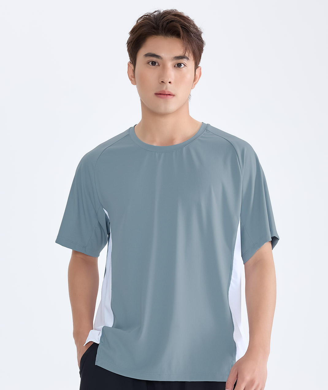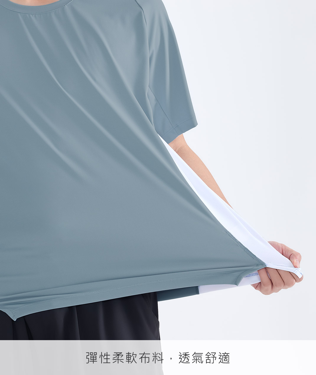 - 組織:主布:冰纖裸感雙面彈性針織布 / 配布:透氣網布