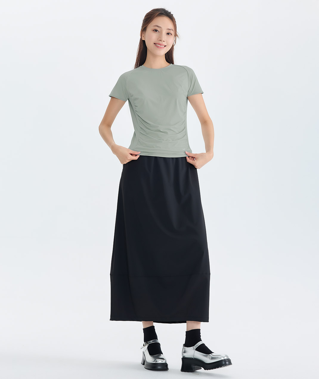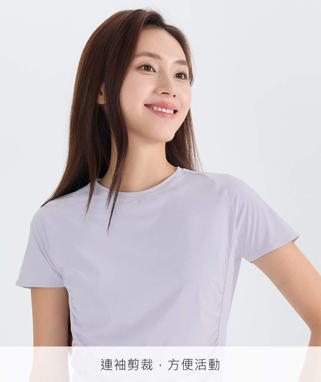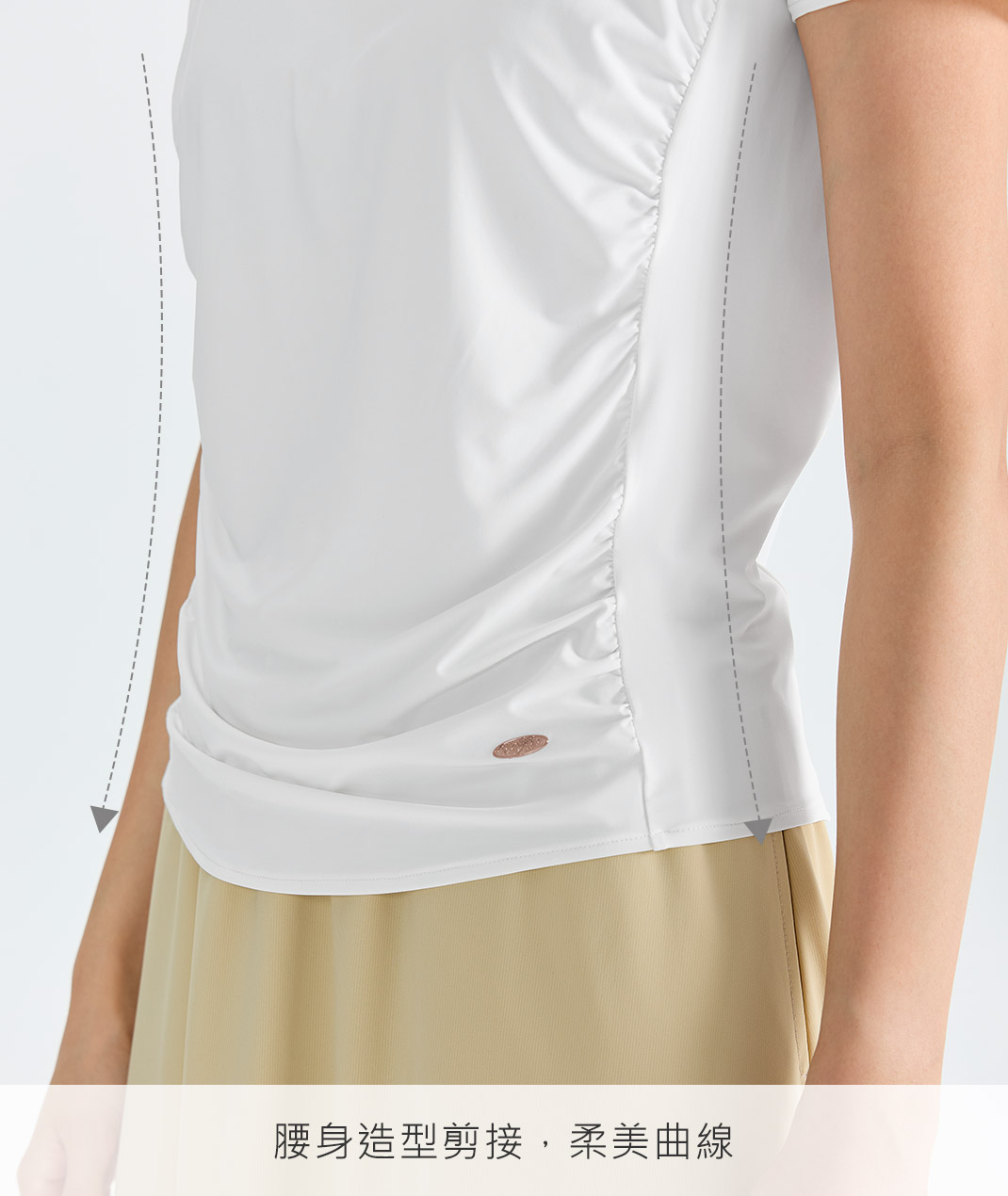 - 超涼感彈性布料,抗菌速乾、透氣舒適。連袖剪裁,方便活動;腰身造型剪接,柔美曲線,簡潔百搭,適合夏日通勤、運動與日常穿搭。