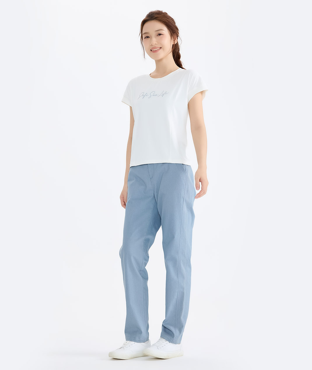 - 延展升級,動靜皆宜。斜紋彈性布料打破緊繃束縛,無論是通勤、慢跑、健行,都能提供感官級舒適且久穿不變形。清爽透氣膚觸,讓妳防曬走動更有型