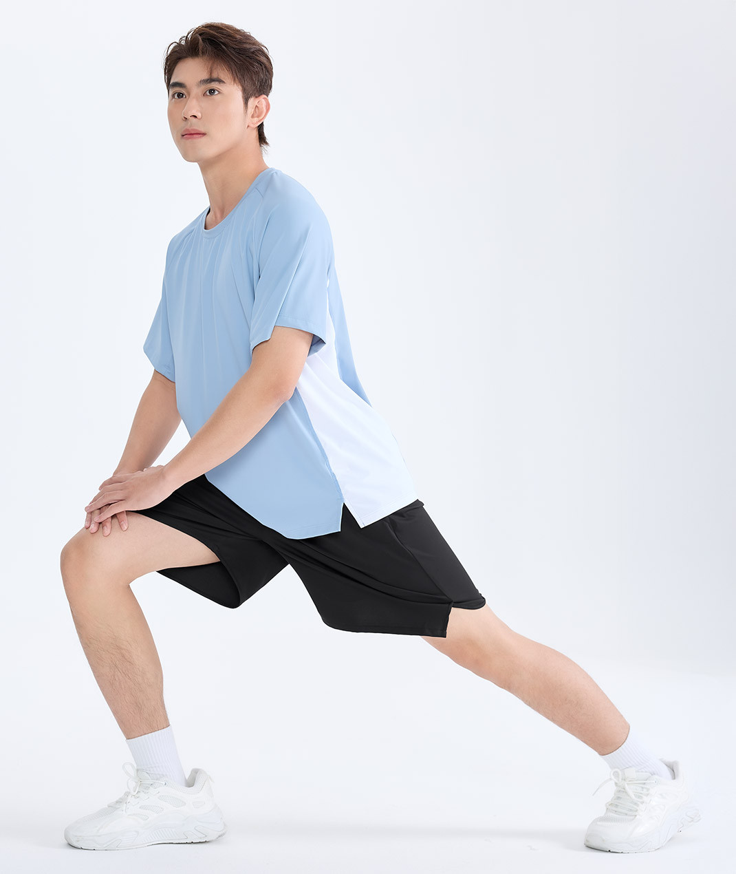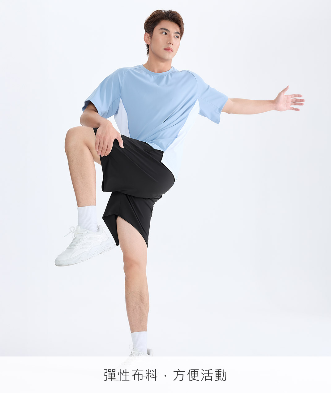 - 組織:主布:冰纖裸感雙面彈性針織布 / 配布:透氣網布