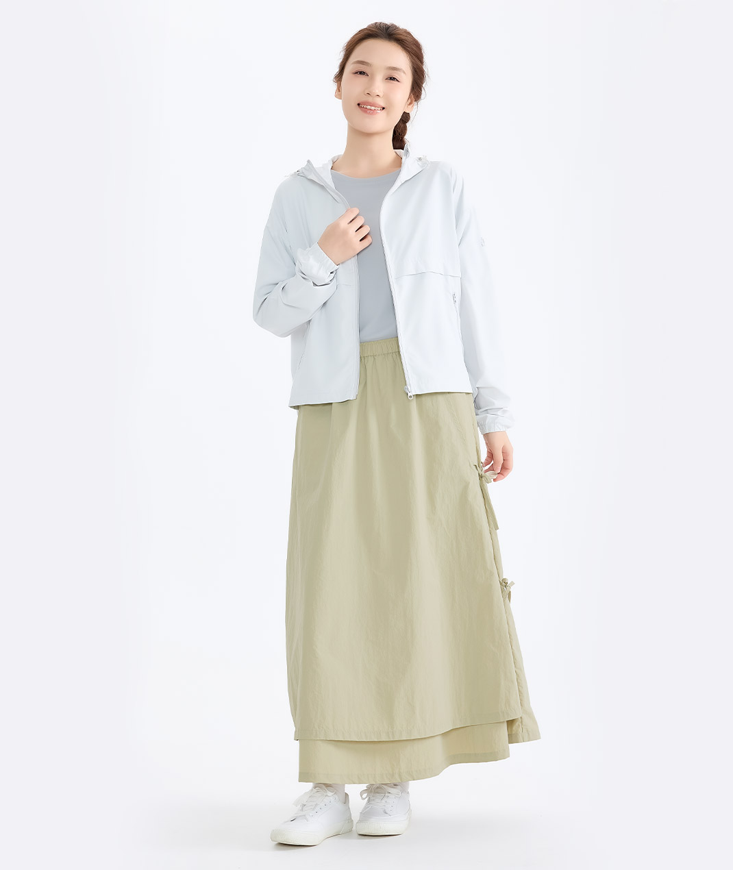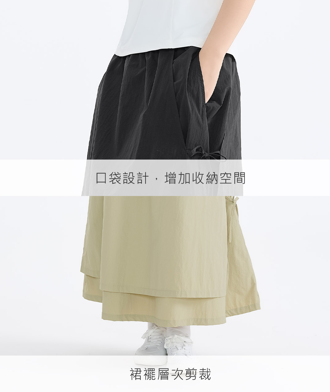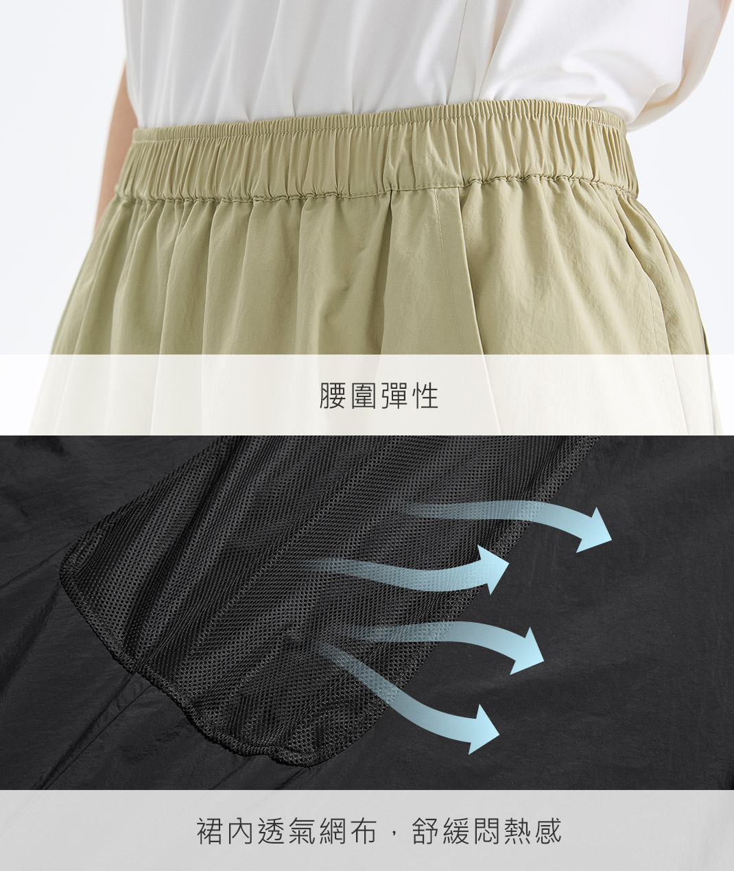 - 透氣感有感升級,走一整天也乾爽。不對稱綁帶修飾線條,壓皺彈性腰好活動;耐磨又防潑水,遇小雨也不怕,還用環保REC材質,度假日常都好搭。
