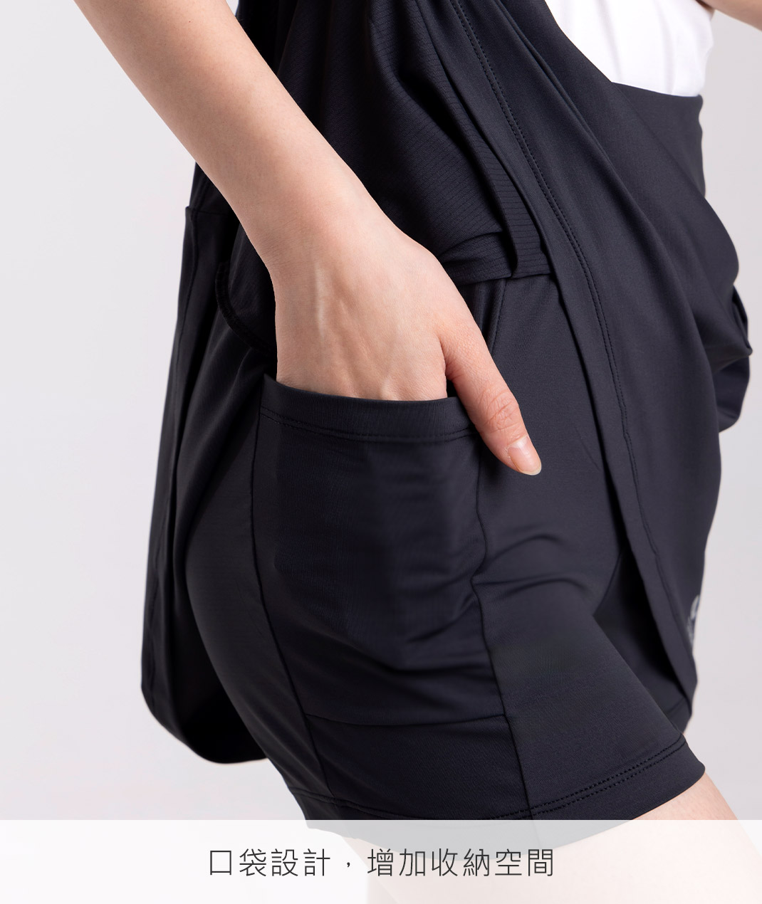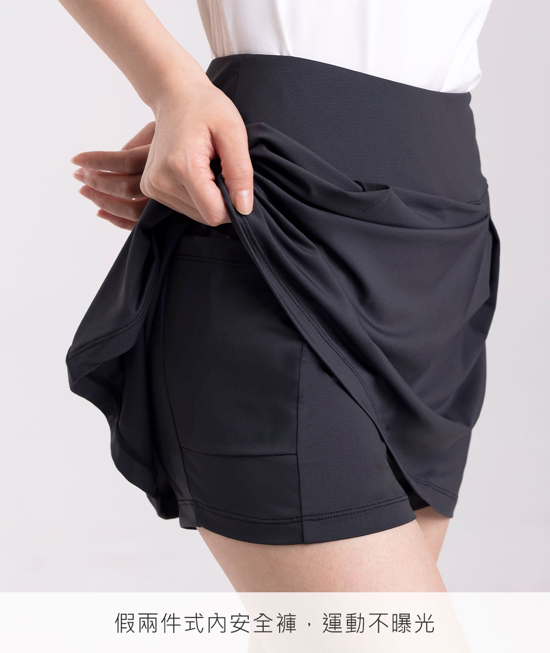 - 以銀纖維抗菌布料製成,保持裙子清新,抗UV功能更是為您的皮膚提供全面防護。特設的假兩件式安全褲設計,讓您在運動中自在擺動不擔心曝光,同時提供了足夠的舒適感。