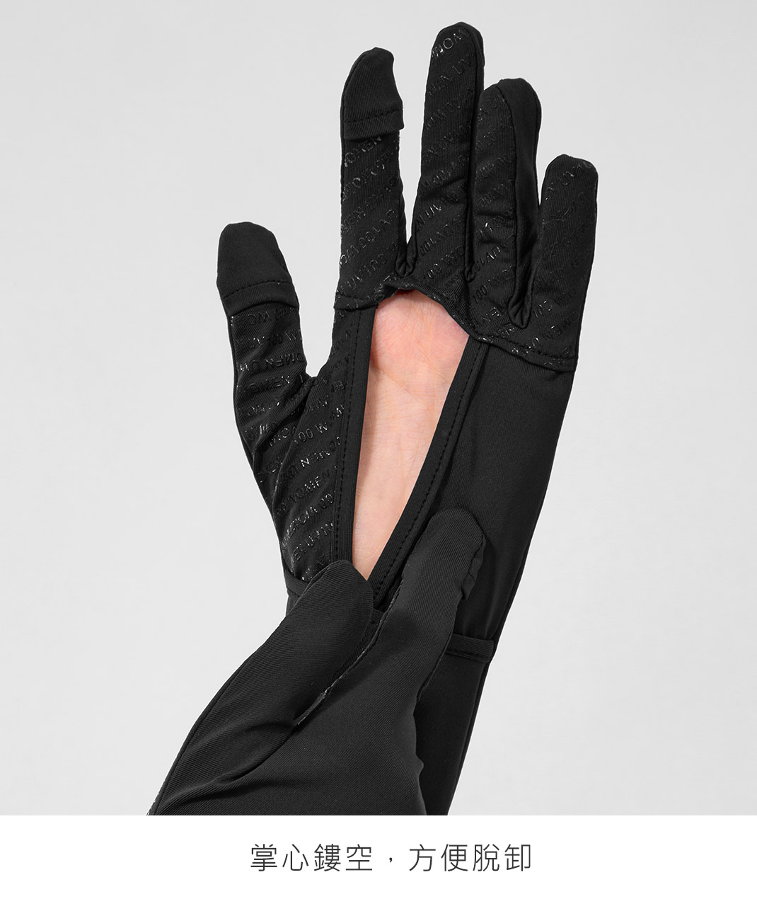 - 採用Apex涼感材質,為肌膚帶來即刻降溫效果,讓妳在炎熱天氣中保持清爽舒適。掌心鏤空設計增強透氣性,方便靈活操作,同時有指結構提供更全面的防曬保護。
