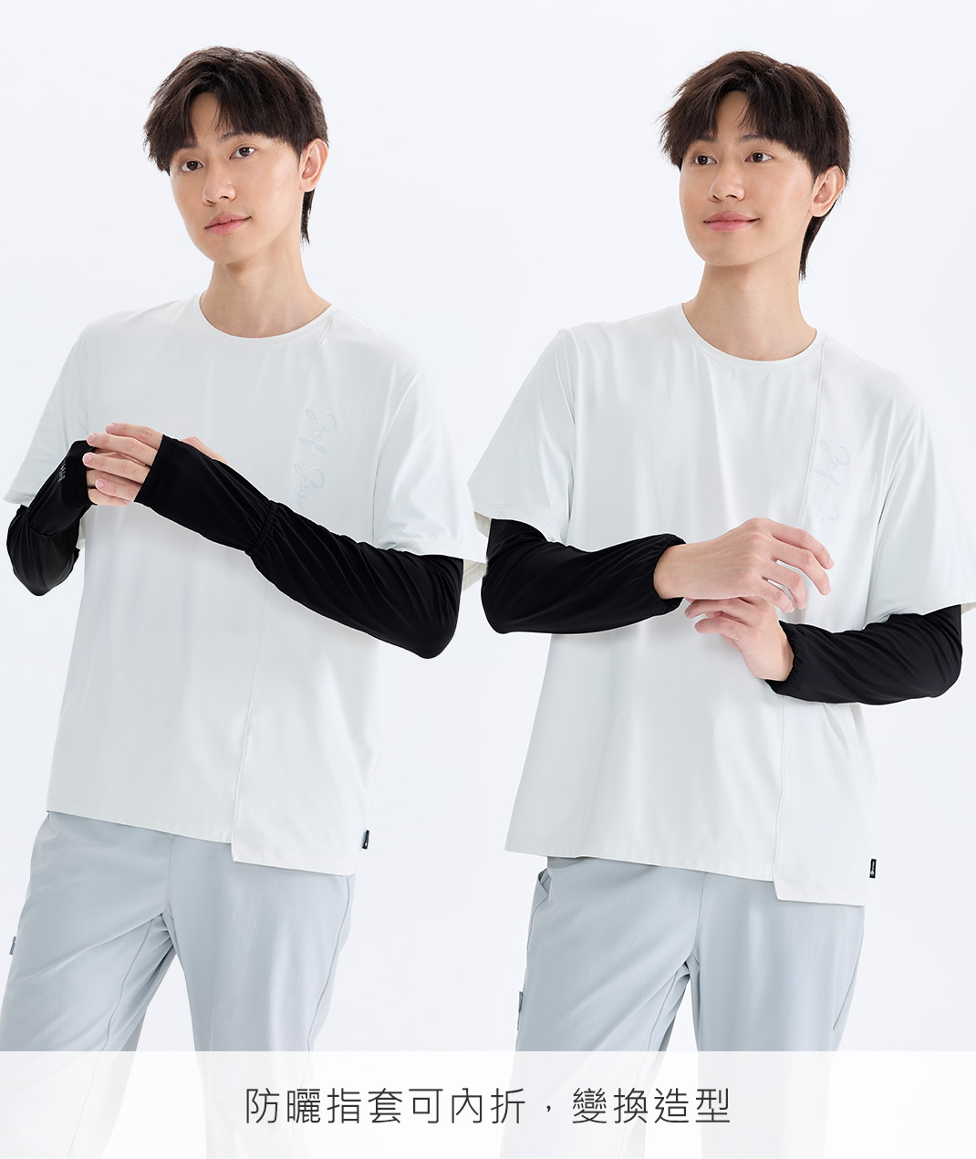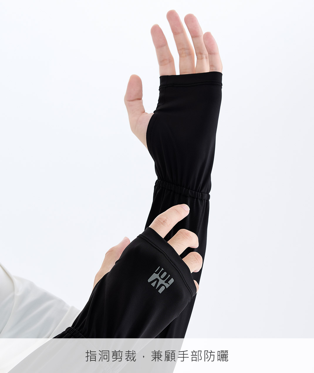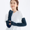 - 涼感抗菌材質,吸濕速乾更清爽;透氣網布加強散熱。寬鬆版型配指洞剪裁,兼顧手部防曬;臂圍鬆緊貼合不勒,提供手臂輕盈防曬與舒適感,日常與戶外活動都適宜。