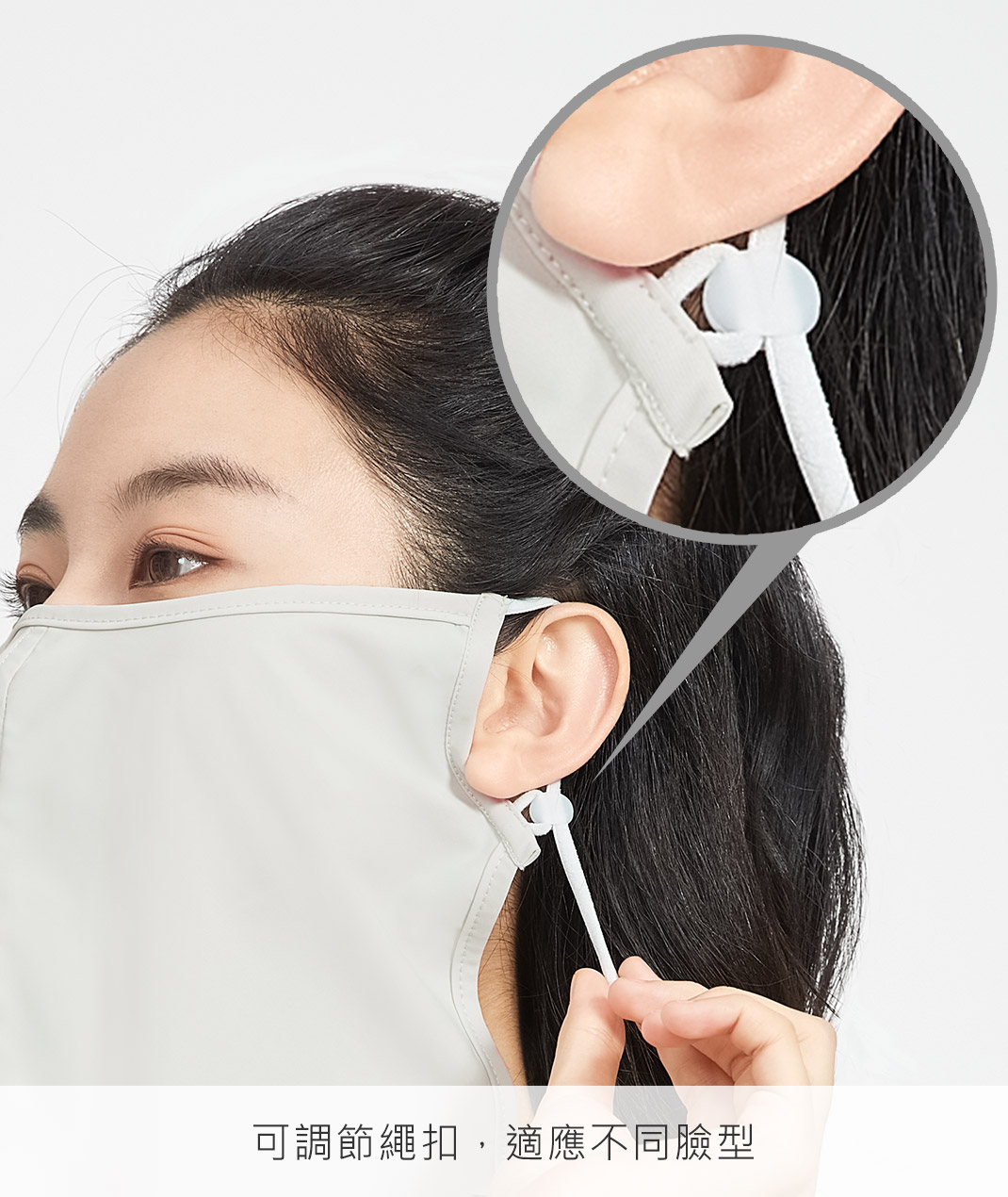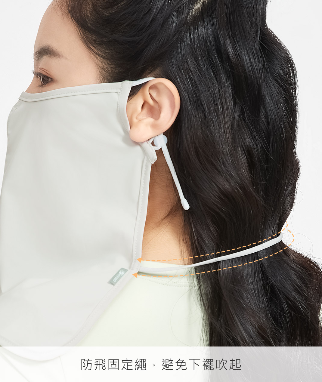 - 結合護頸與防曬設計,涼感材質助您保持乾爽。可調節繩扣,貼合多種臉型,兼具功能性與舒適性,是外出防護的理想選擇。