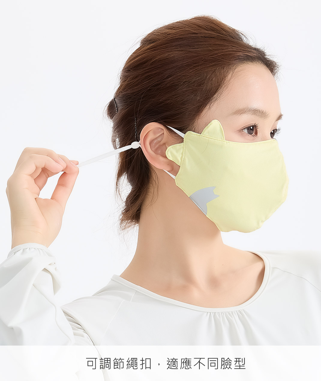 - 日常出門增添一抹萌感!可愛動物造型印花打破口罩的單調,親膚彈性布料觸感涼爽不黏膩。獨特繩扣設計讓佩戴不再勒耳,讓妳在日常防曬中展現時尚個性