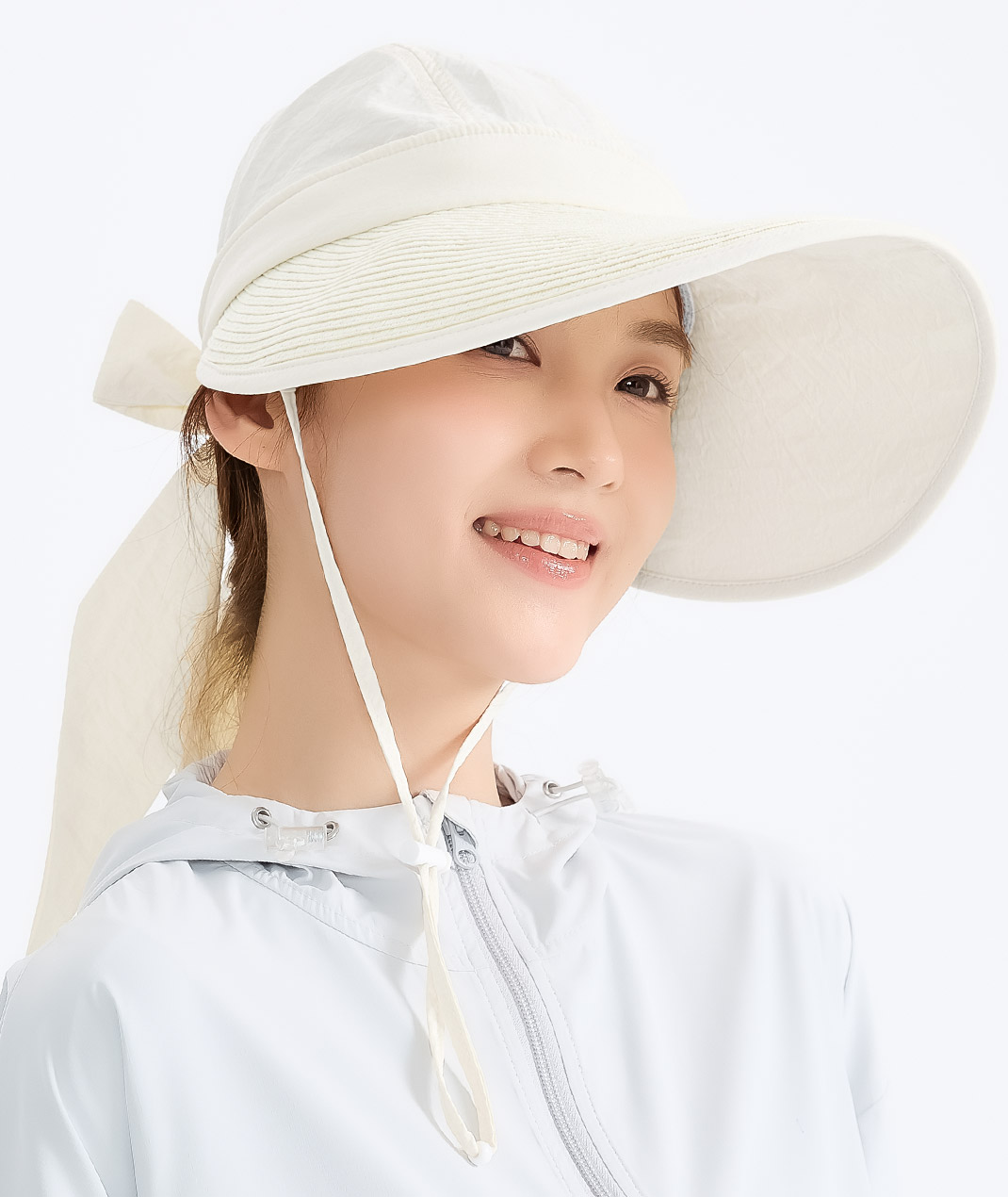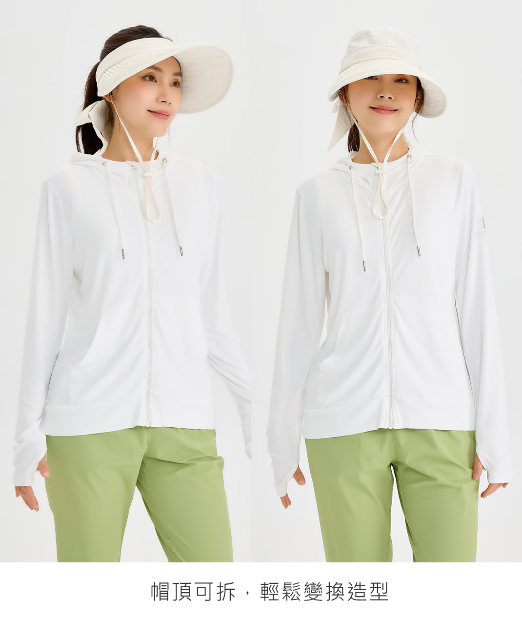 - 晴天遮陽、雨天也從容。大帽簷完整遮陽,輕鬆防護臉部。可拆解帽頂變換中空帽型,讓髮型自由不受限。蝴蝶結造型設計,讓妳在旅遊中展現甜美氣質。