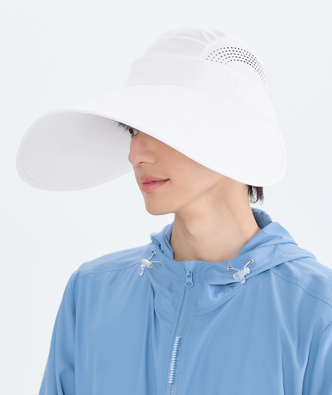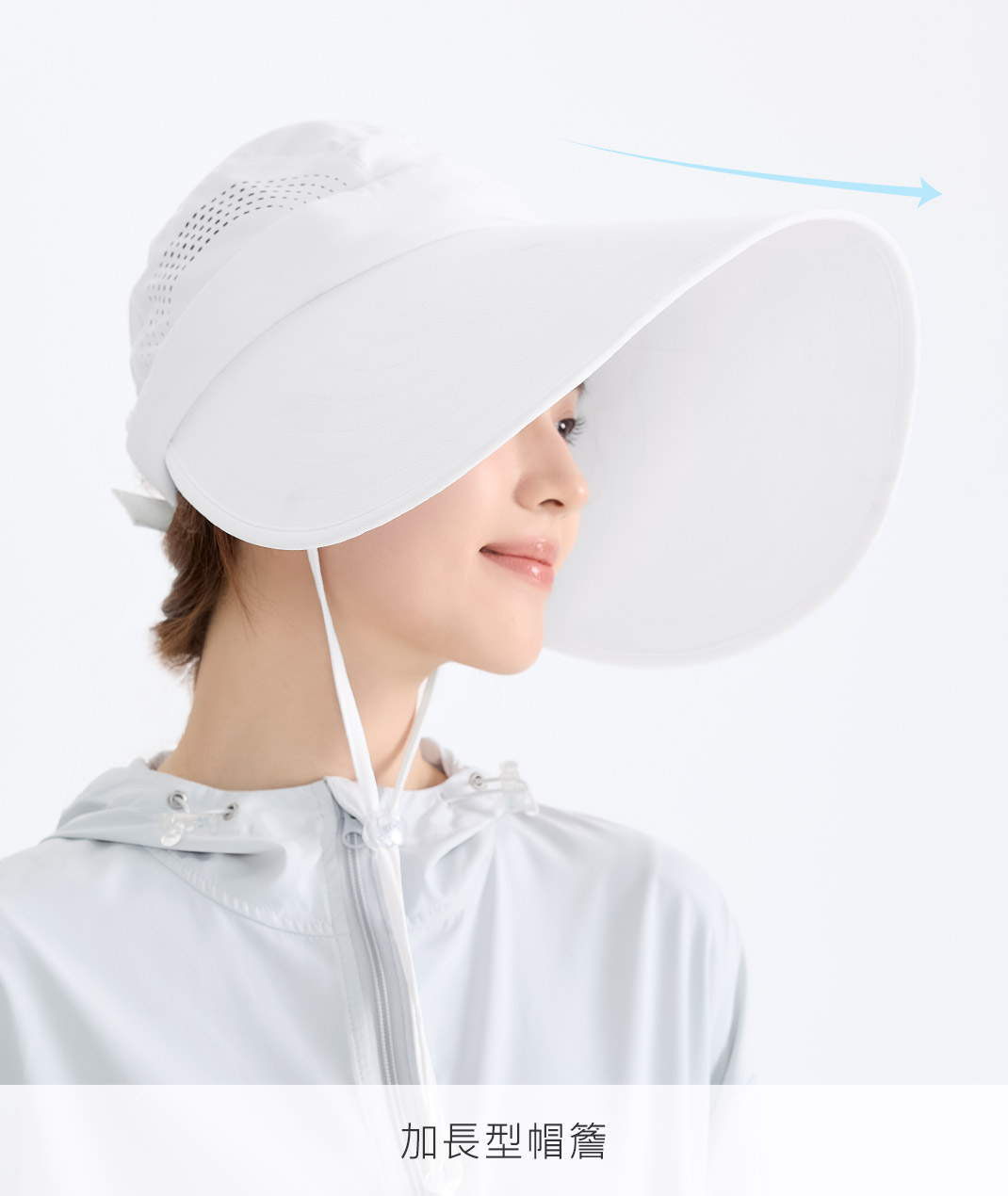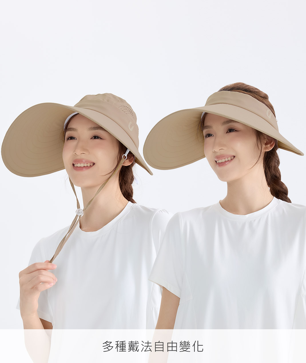 - 加大帽簷延伸至臉頰兩側,阻擋刺眼陽光保護臉蛋。採用涼感速乾材質,拆掉頂蓋秒變空心帽,讓透氣度大幅提升。自由變換造型,省去多帶帽子的麻煩。
