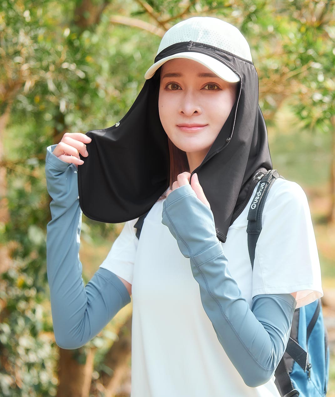 - 360°加長防曬護頸巾,Apex-Elasticity涼感彈性系列。彈性布料結合涼感機能,給予舒適的穿戴體驗。