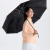 - 一鍵自動開收,出門更俐落。反向折收設計收傘不滴水,不怕車內、走廊弄濕;幾何圖形搭配反光邊條,夜晚行走更醒目安全。晴雨兩用黑膠防護,通勤必備。