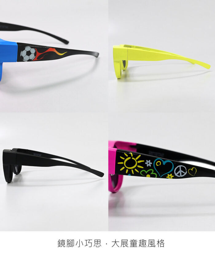 - 兒童款的Polarized偏光套鏡鏡片,有效抗眩光,UV400全面防護;可罩式設計可直接配戴於近視眼鏡外,輕鬆遮陽護眼,通勤與戶外皆適用。