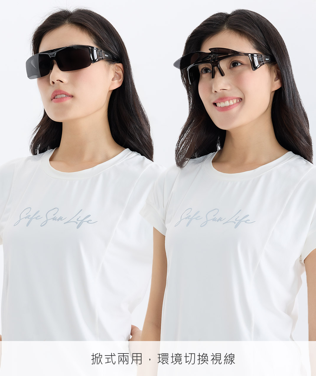 - Polarized鏡片具抗UV400防護與偏光功能,,立體鼻樑墊高設計,可單戴或可直接配戴眼鏡上。掀式兩用,環境切換視線,具運動感與實用性,適合戶外活動配戴。