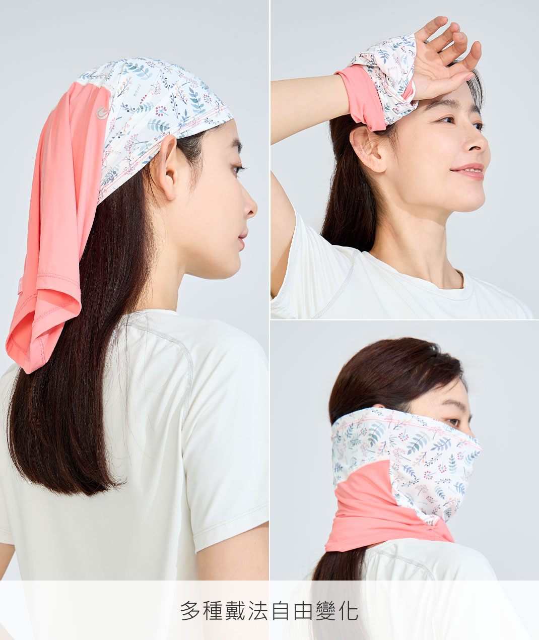 - 提供全方位防曬保護,更以獨特的雙色印花點綴,展現時尚品味。多功能的萬用巾設計,可變化多種穿戴方式,輕鬆搭配各種造型。