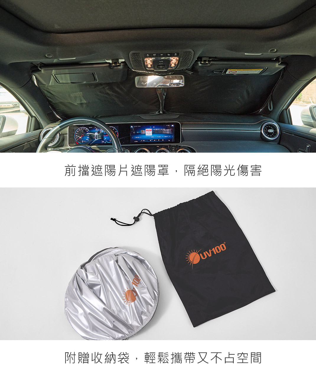 - 抗UV遮陽片有效阻隔熱能,保護儀表板與座椅不變質。附贈專屬收納袋,輕鬆摺疊不佔空間。安裝簡單迅速,讓車室維持涼爽舒適。守護您的愛車美觀,是夏日開車的必備涼伴。