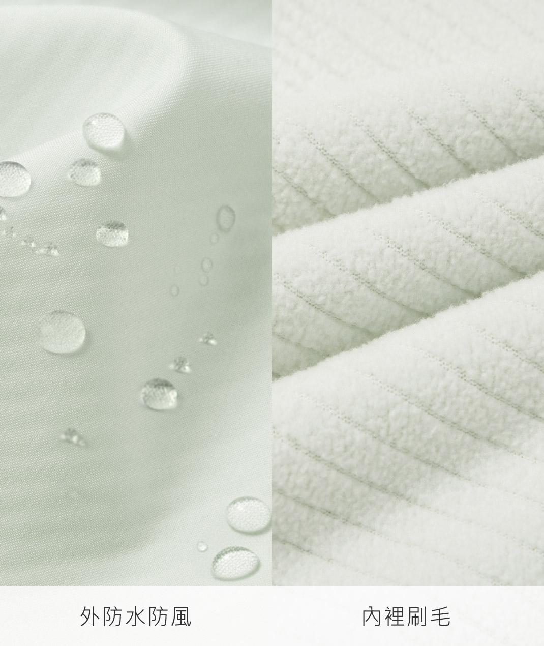 - 防水貼條設計強化防護,布料兼具防水防風機能,內裏刷毛柔軟保暖。細節貼心升級,無論通勤或戶外活動皆能舒適禦寒。