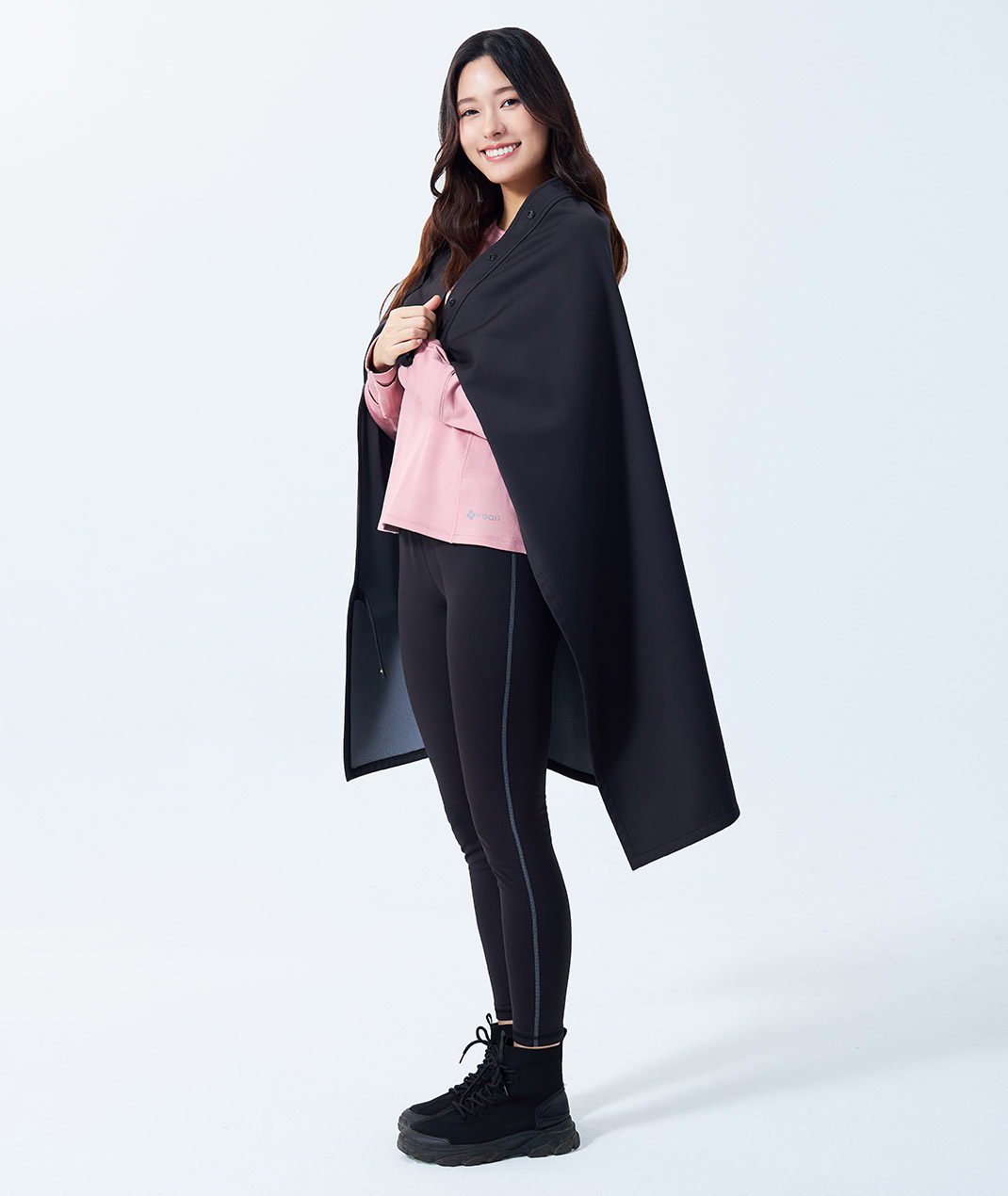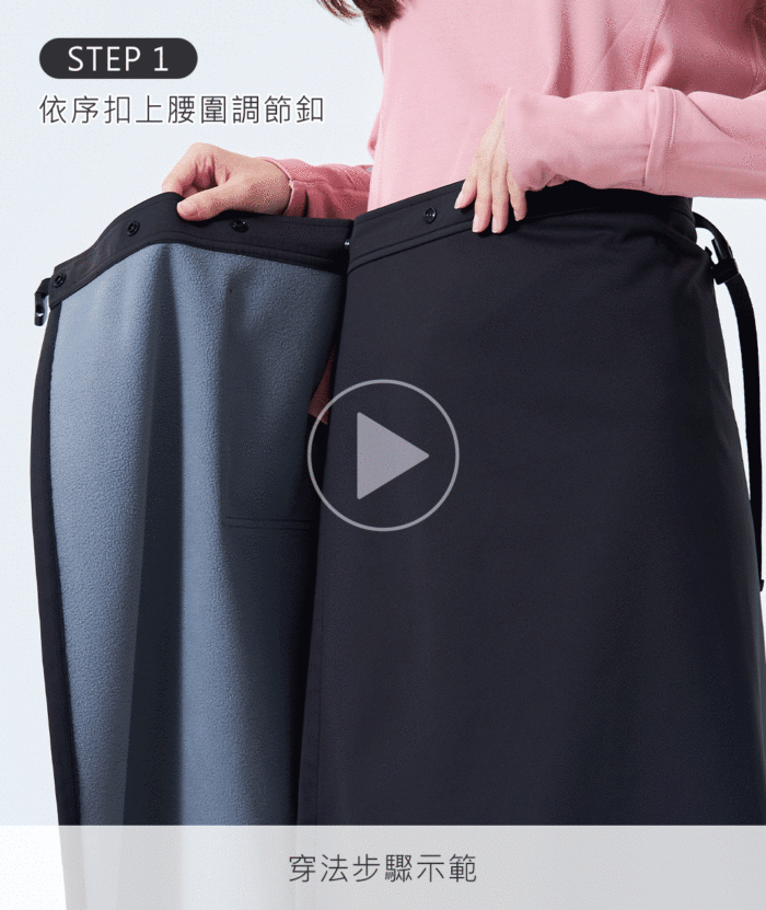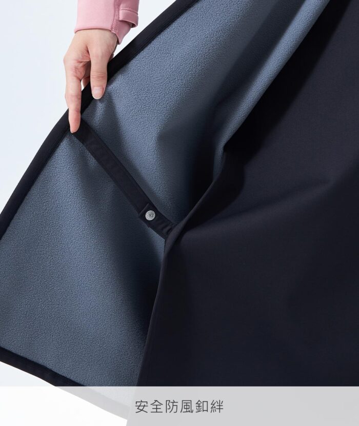 - 為冬日通勤族設計一片裙,保暖軟殼布料,擁有防風、保暖機能,調節釦搭配織帶插釦,可自行調整舒適腰圍,還能當作毯子使用,可應用在辦公午睡、客廳蓋毯。