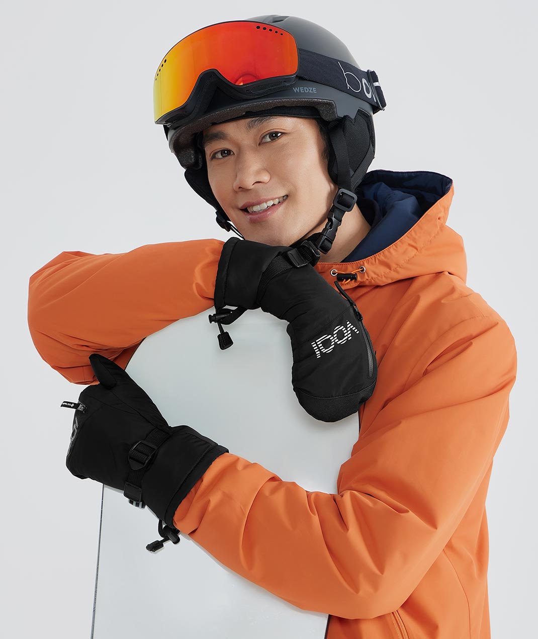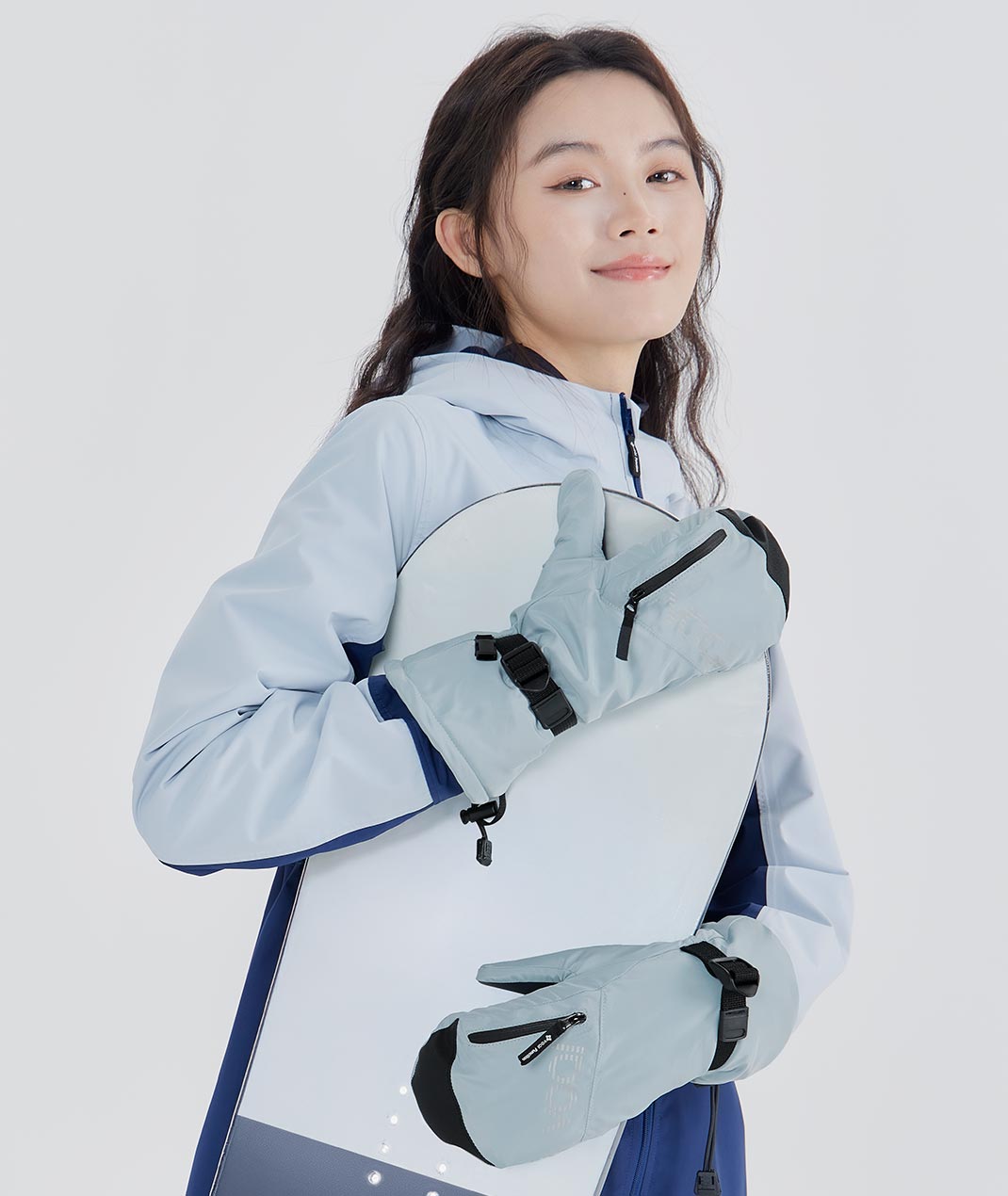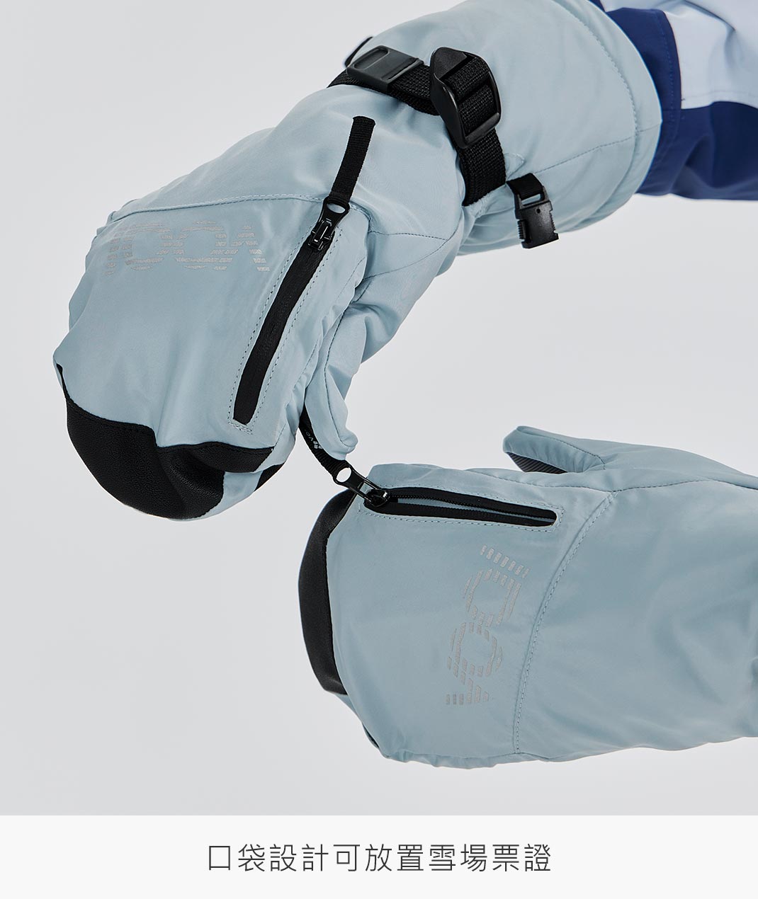 - 防水保暖可調式連指手套,內裏柔軟舒適,快速調節防風束口有效鎖溫。繫帶設計可依需求調整,掌心止滑增添抓握力,搭配反光LOGO提升夜間安全性,附防遺失母扣繩,滑雪登山皆適合。