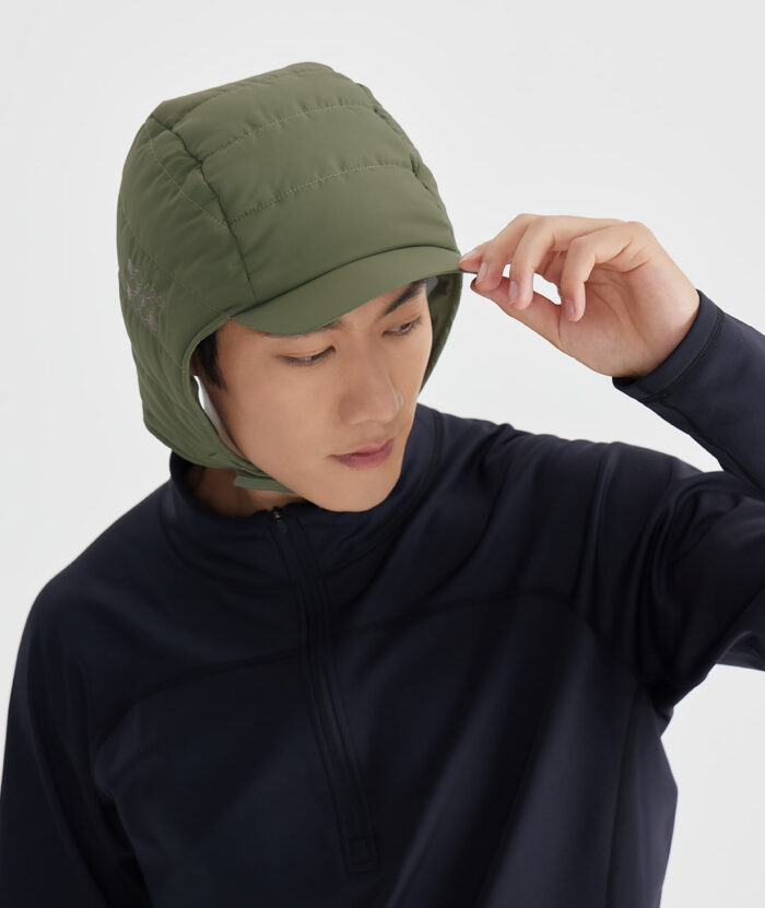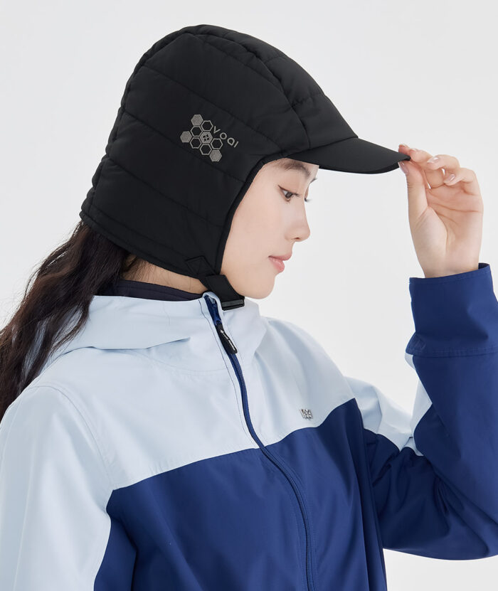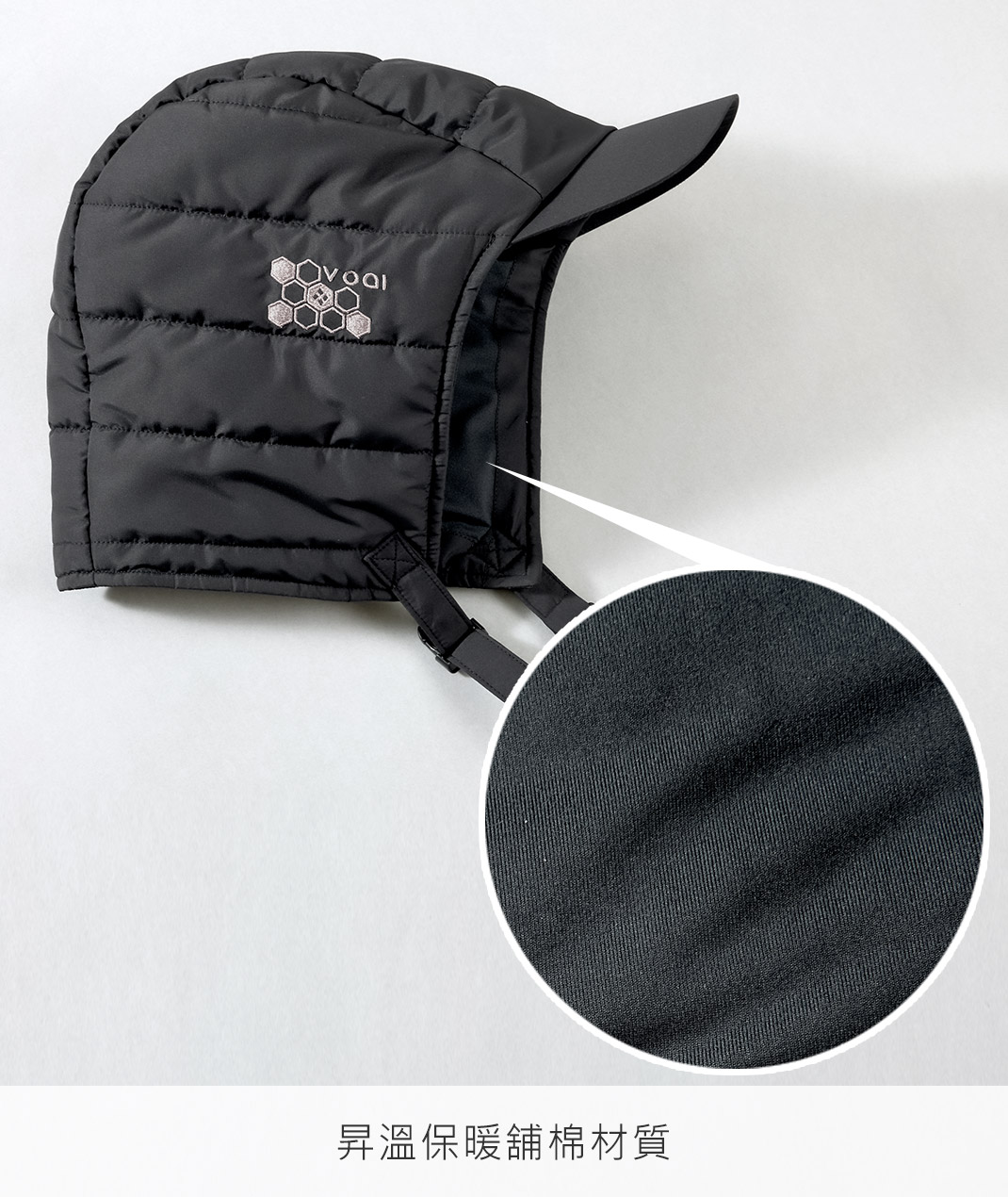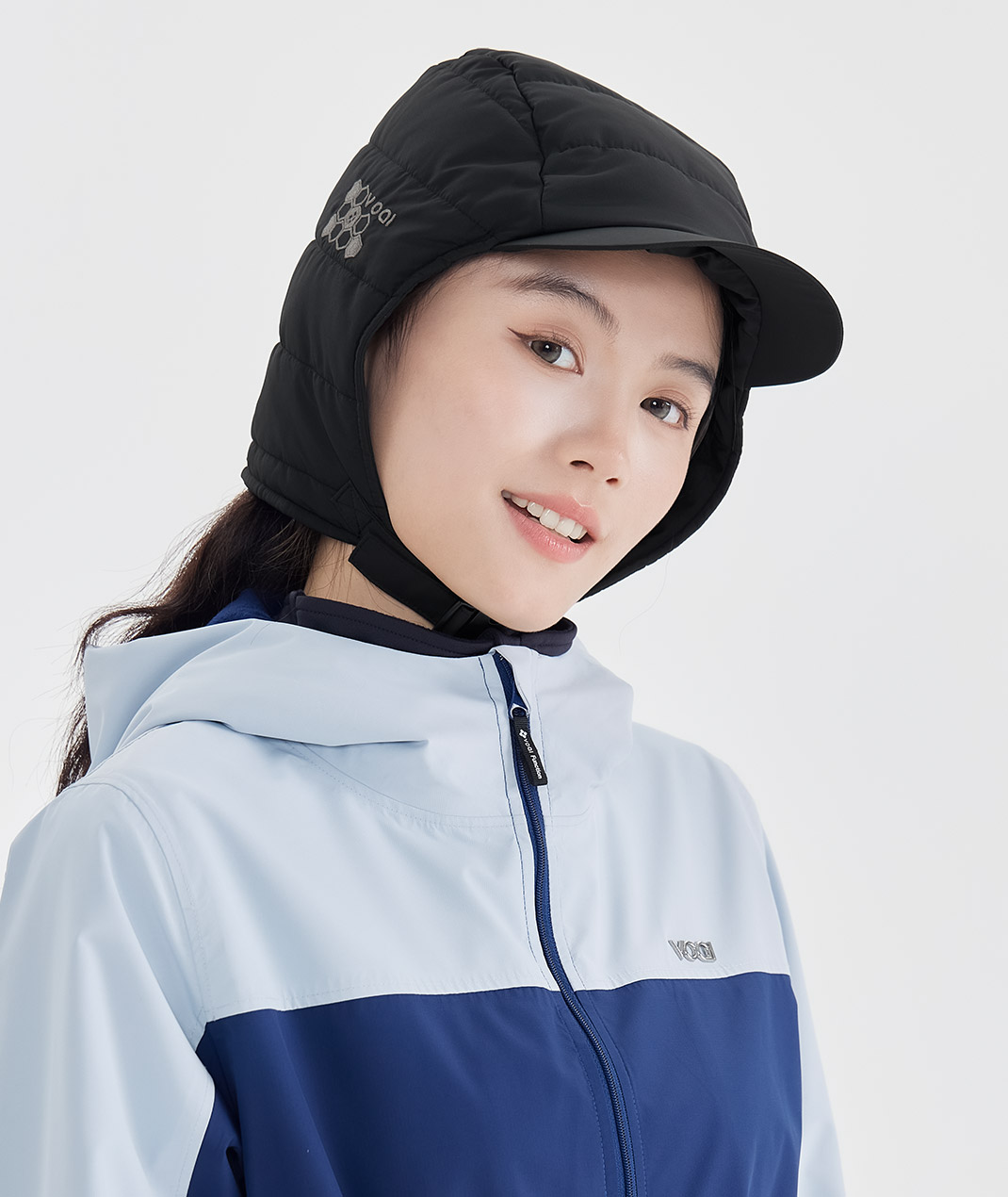 - 保暖舖棉飛行帽,結合抗UV、防風與超潑水功能,內裏昇溫保暖技術,頭部恆溫舒適。下頷扣帶可調整,貼合穩固,加強護耳護頭效果,完美滿足戶外與日常防寒。