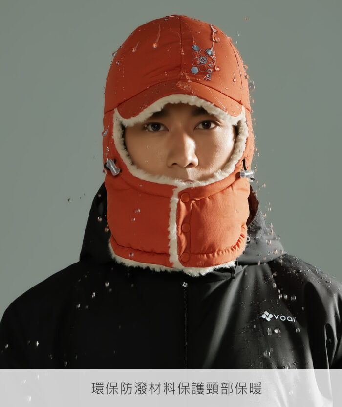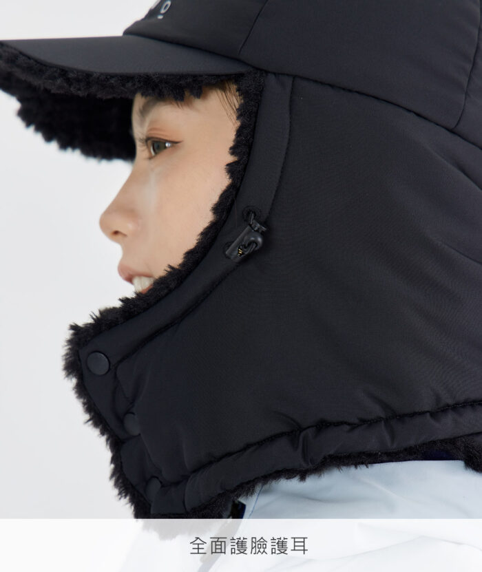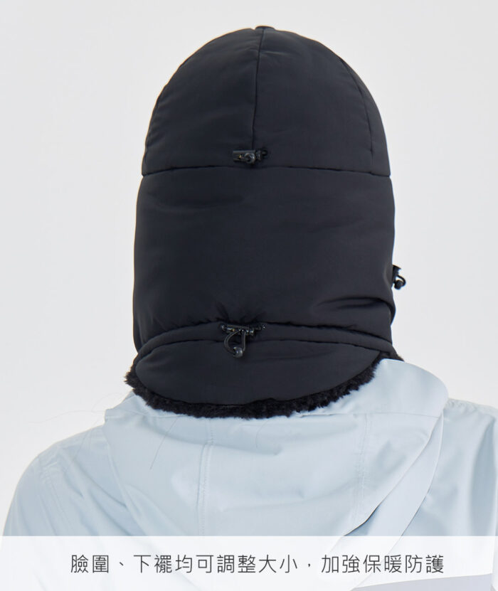 - 仿兔毛雷鋒帽造型全面保暖護臉護耳,環保防潑材質搭配可調整臉圍設計,有效阻擋寒風與雨水入侵,搭配可調臉圍設計,強化頸部防護!