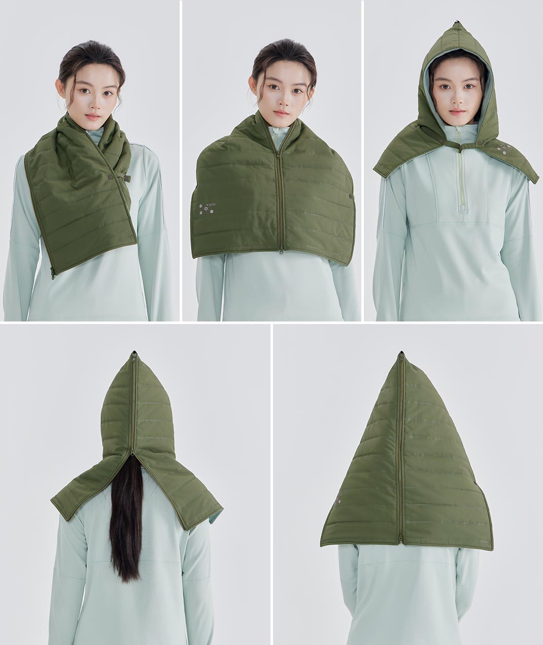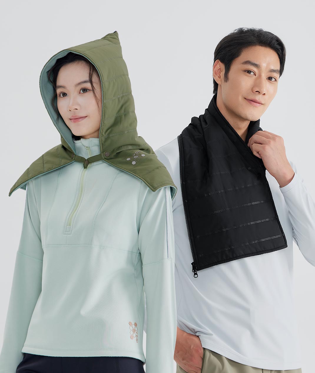 - 多變造型百搭時尚造型脖圍,防風超潑水材質舒適保暖。科技羽絨填充輕盈柔軟,可拆洗設計方便清潔。無論通勤或戶外活動皆能保有溫度與風格。