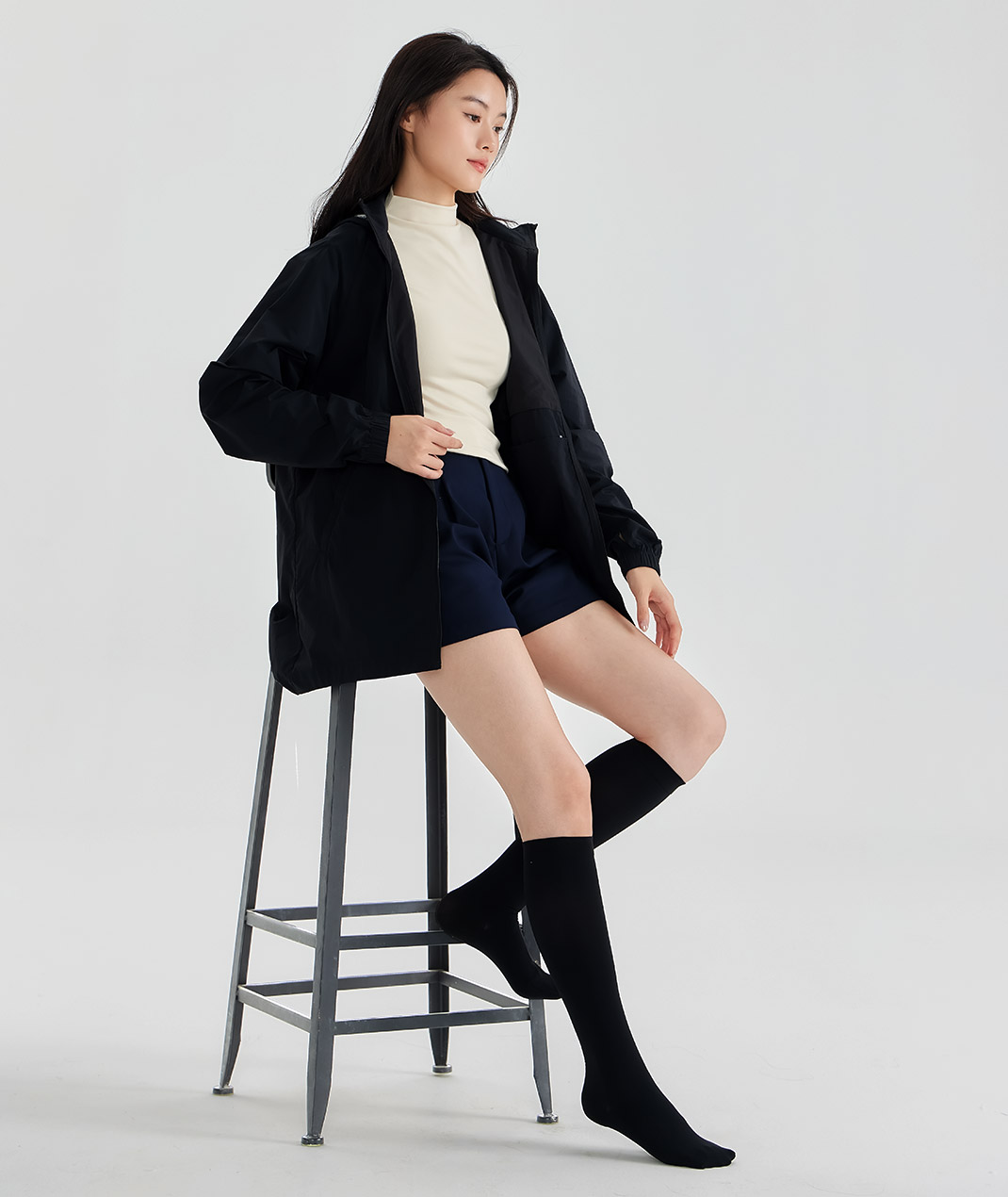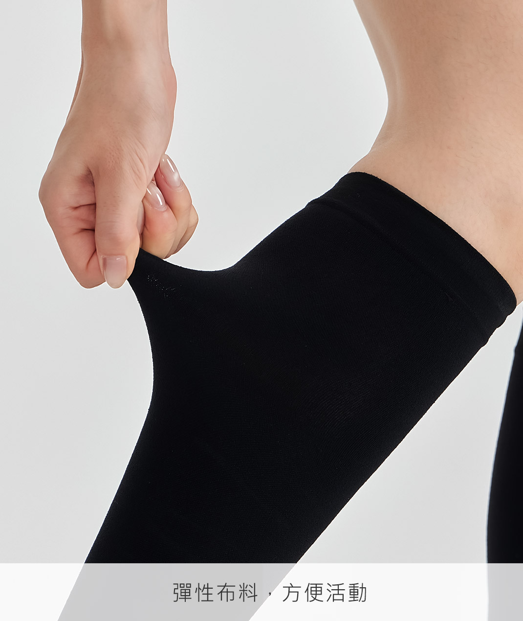 - 彈力緊身機能美腿中筒襪,採高彈性布料包覆雙腿,梯度剪裁設計服貼腿型,長時間穿著舒適不緊繃,展現俐落腿部線條,適合久站久坐或外出穿搭。